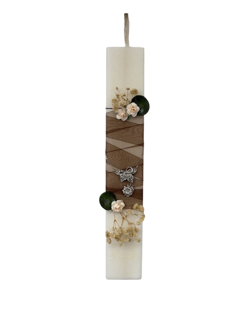Λαμπάδα χειροποίητη συνδυασμένη με κολιέ και κορδέλες.