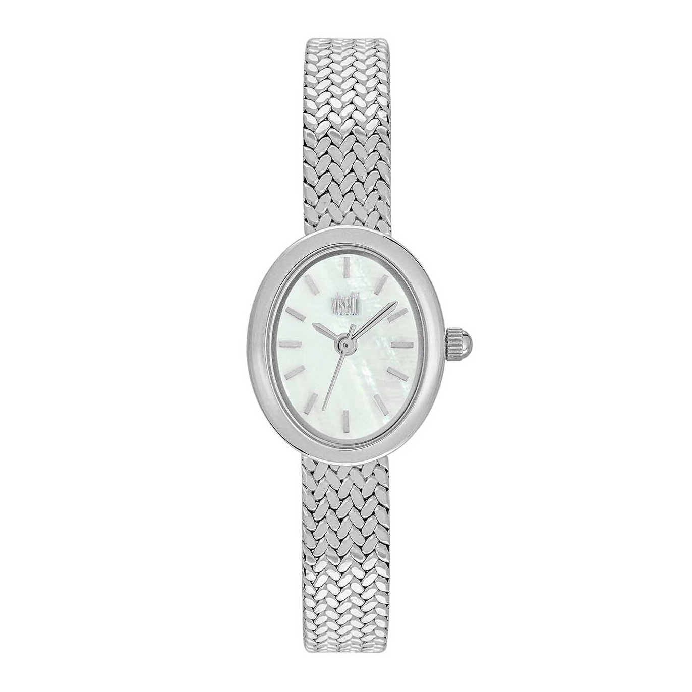 Ρολόι με ασημί μπρασελέ , αδιάβροχο στις 3 ατμ, κάσα μεσσαίου μεγέθους σε οβάλ σχήμα με λευκό χρώμα ,αναλογικός quartz μηχανισμός από ανοξείδωτο ατσάλι με δύο χρόνια εγγύηση.