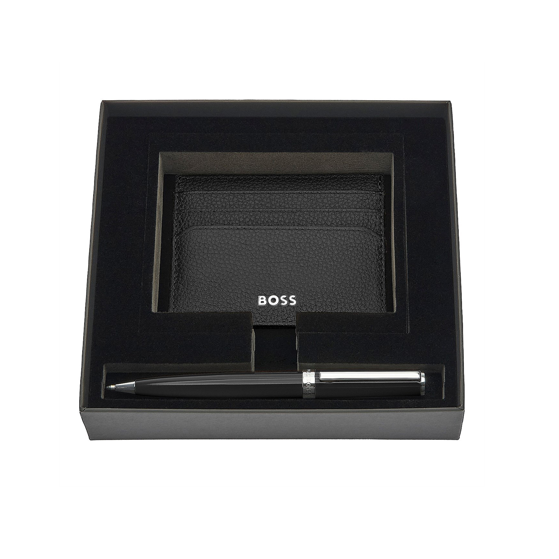 Σετ με στυλό από ανοξείδωτο ατσάλι και πορτοφόλι καρτών με την εγγύηση της HUGO BOSS.