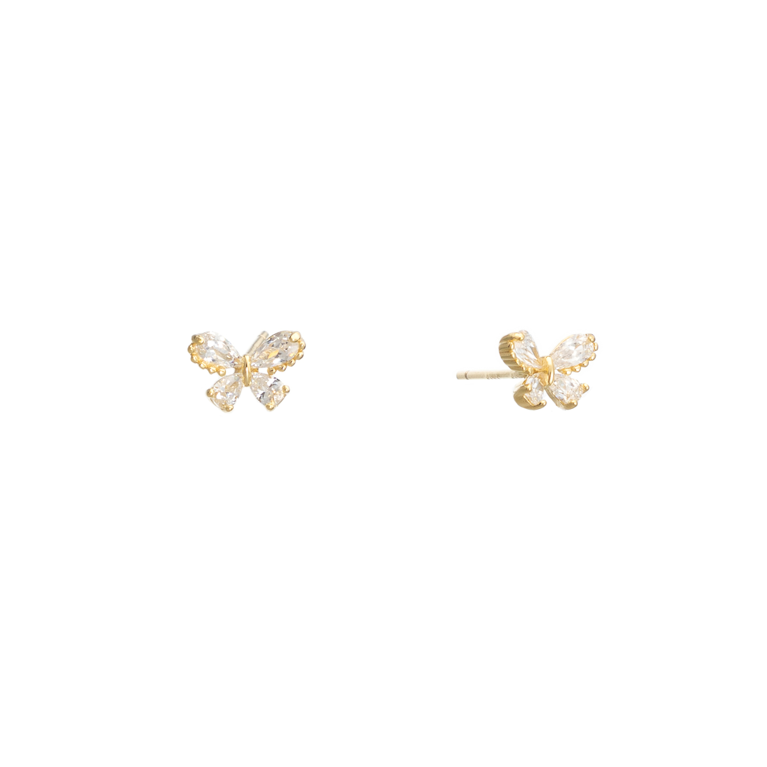 Ασημένια σκουλαρίκια επιχρυσωμένα, καρφωτά σε σχέδιο πεταλούδας με ζιργκόν πέτρες.