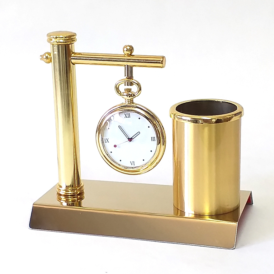 Διακοσμητικό γραφείου σετ με βάση για 2 στυλό και ρολόι μπαταρίας στο κέντρο.