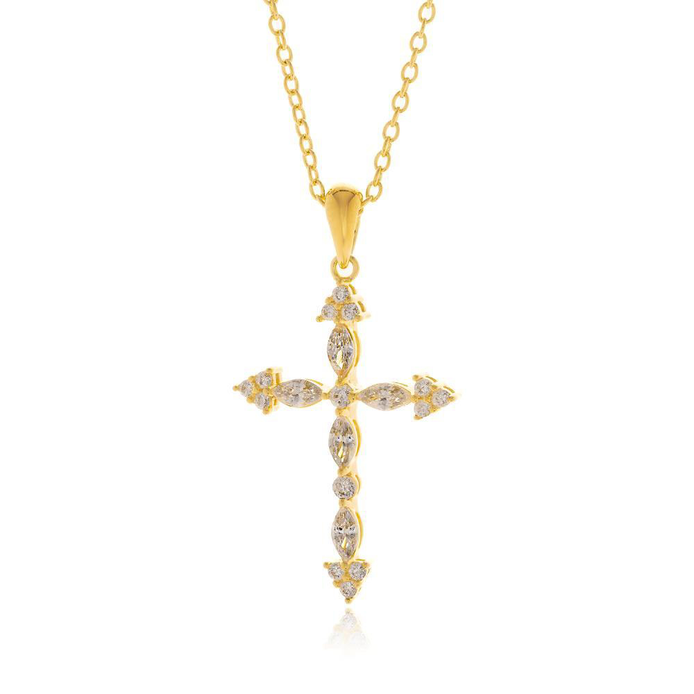 Κολιέ ασημένιο επιχρυσωμένο με ζιργκόν πέτρες καρφωμένες στον σταυρό.