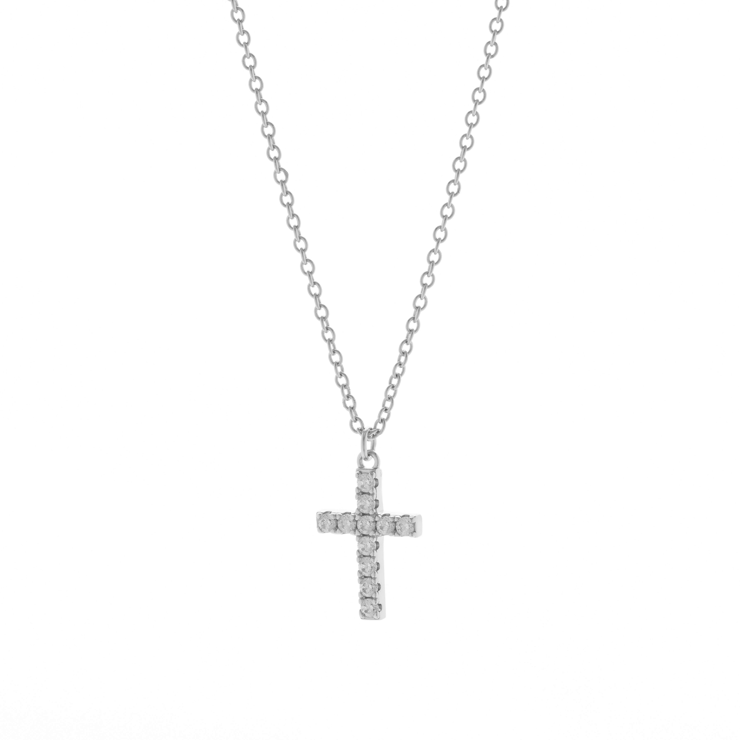 Κολιέ ασημένιο με ζιργκόν πέτρες καρφωμένες στον σταυρό.