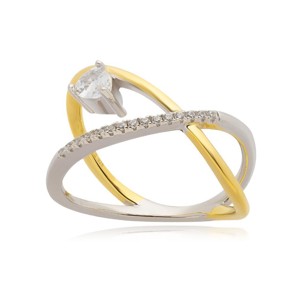 Δαχτυλίδι ασημένιο με επιχρυσωμένη επιφάνεια, φαρδύ με διάτρυτο σχέδιο από ζιργκόν πετρες.