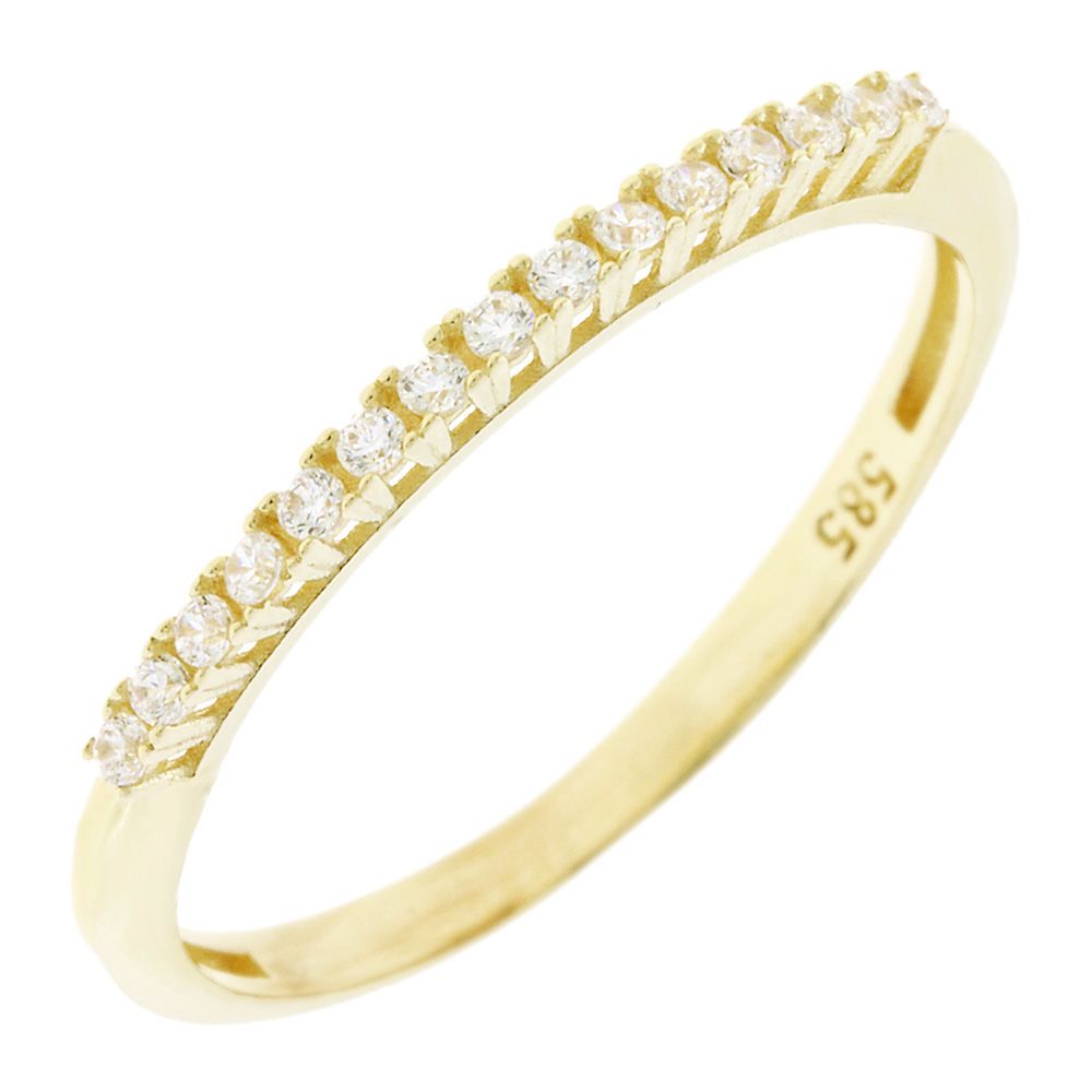 Δαχτυλίδι χρυσό 14 καρατίων. Λεπτό σχέδιο σα βεράκι με ζιργκόν πέτρες.