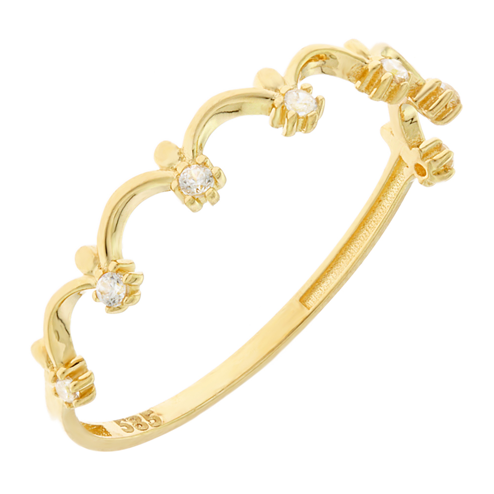 Δαχτυλίδι χρυσό 14 καρατίων. Λεπτό σχέδιο σα βεράκι με ζιργκόν πέτρες.