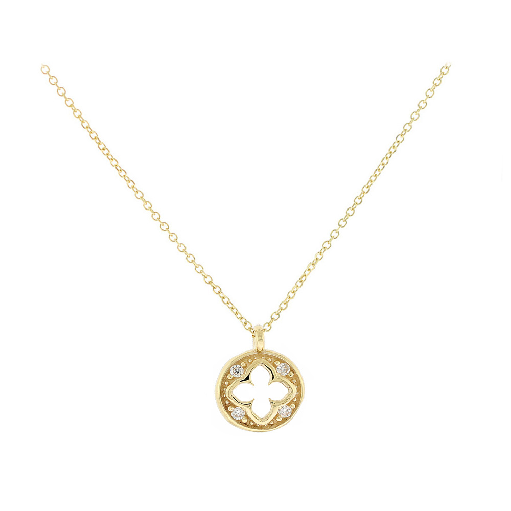 Κολιέ 09 καρατίων σε χρυσό χρώμα με ζιργκόν πέτρες και αλυσίδα με σταυρουδάκι.