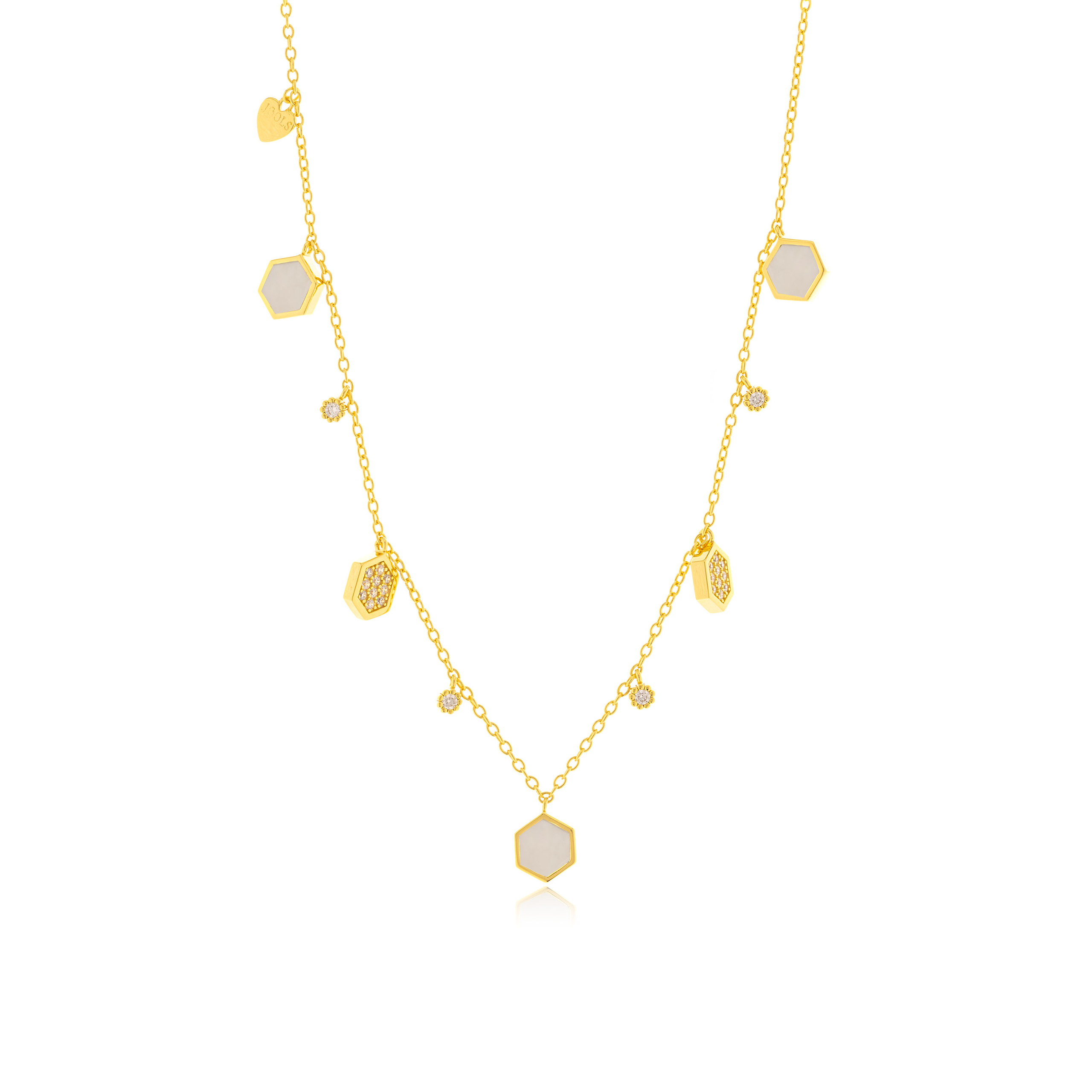 Κολιέ ασημένιο επιχρυσωμένο με ζιργκόν πέτρες και φίλντισι.
