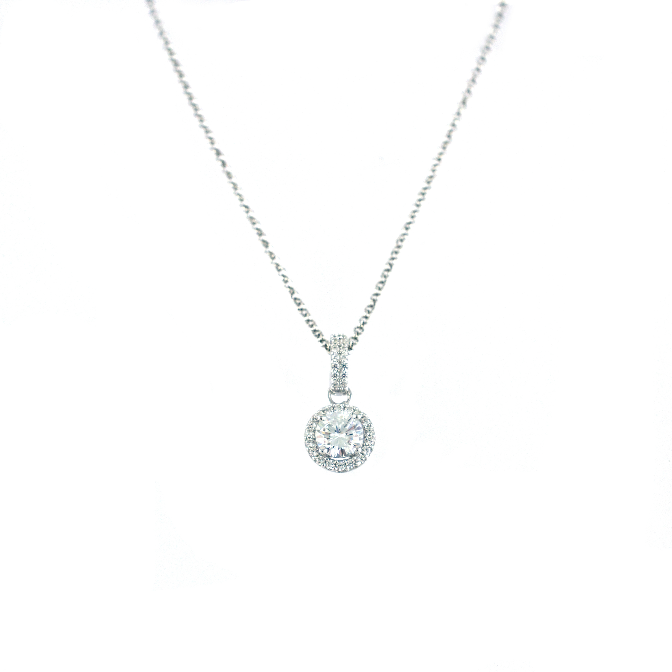 Κολιέ ασημένιο  από ζιργκόν καρφωμένες πέτρες με σχέδιο ροζέτας.