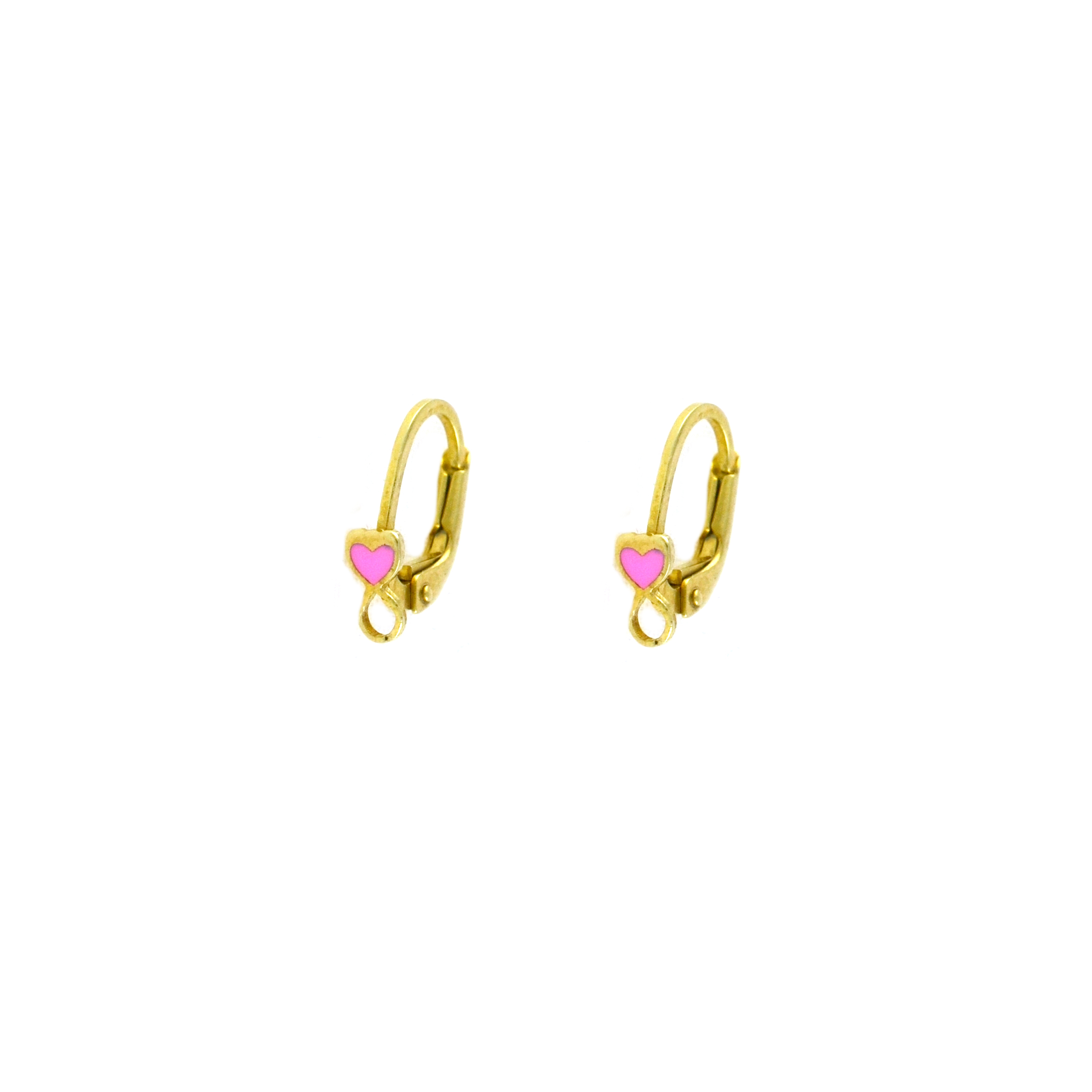 Ασημένια σκουλαρίκια επιχρυσωμένα, καρφωτά σε σχέδιο γάτζου με καρδιά από σμάλτο.