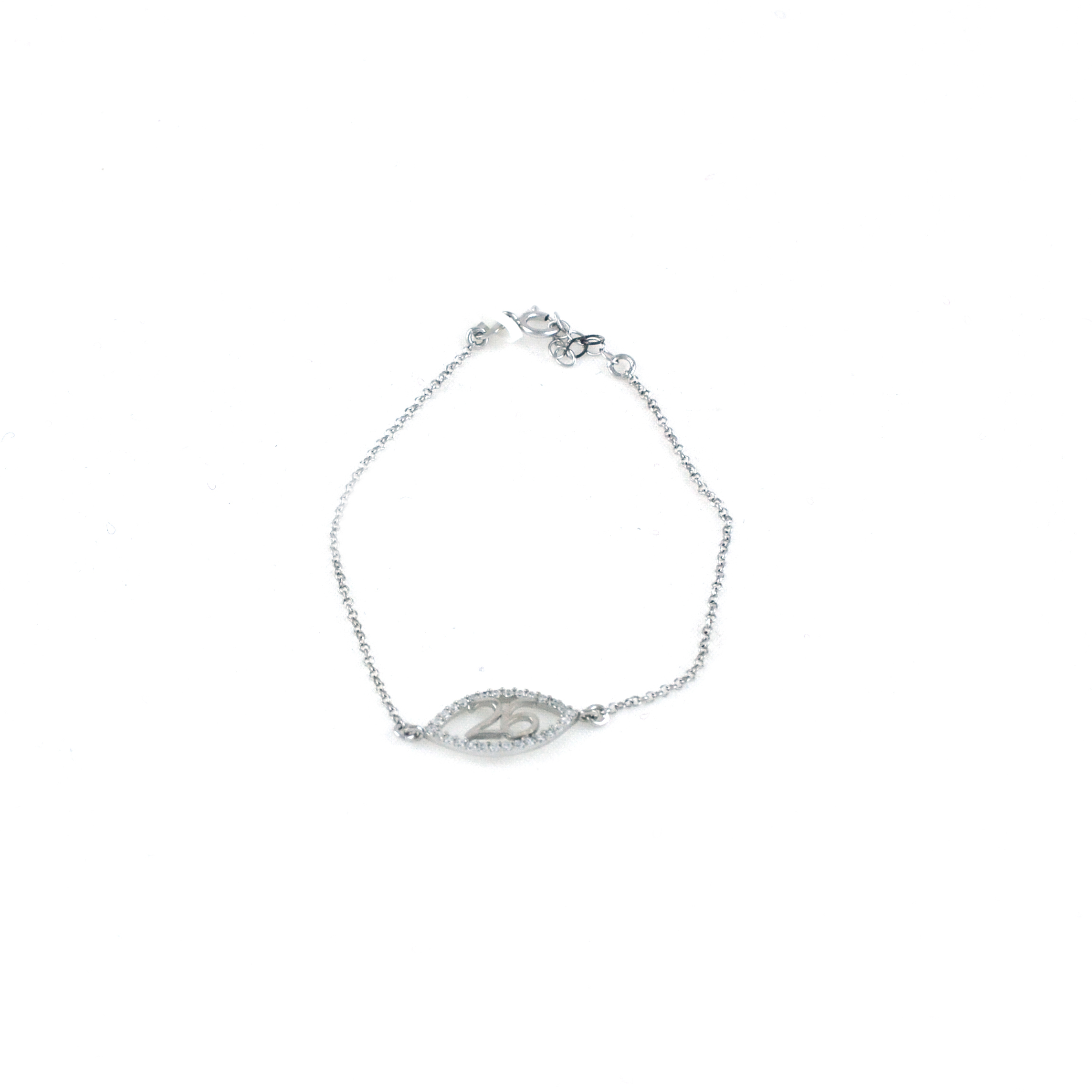 Βραχιόλι ασημένιο με διακριτικό γούρι από ζιργκόν πέτρες.