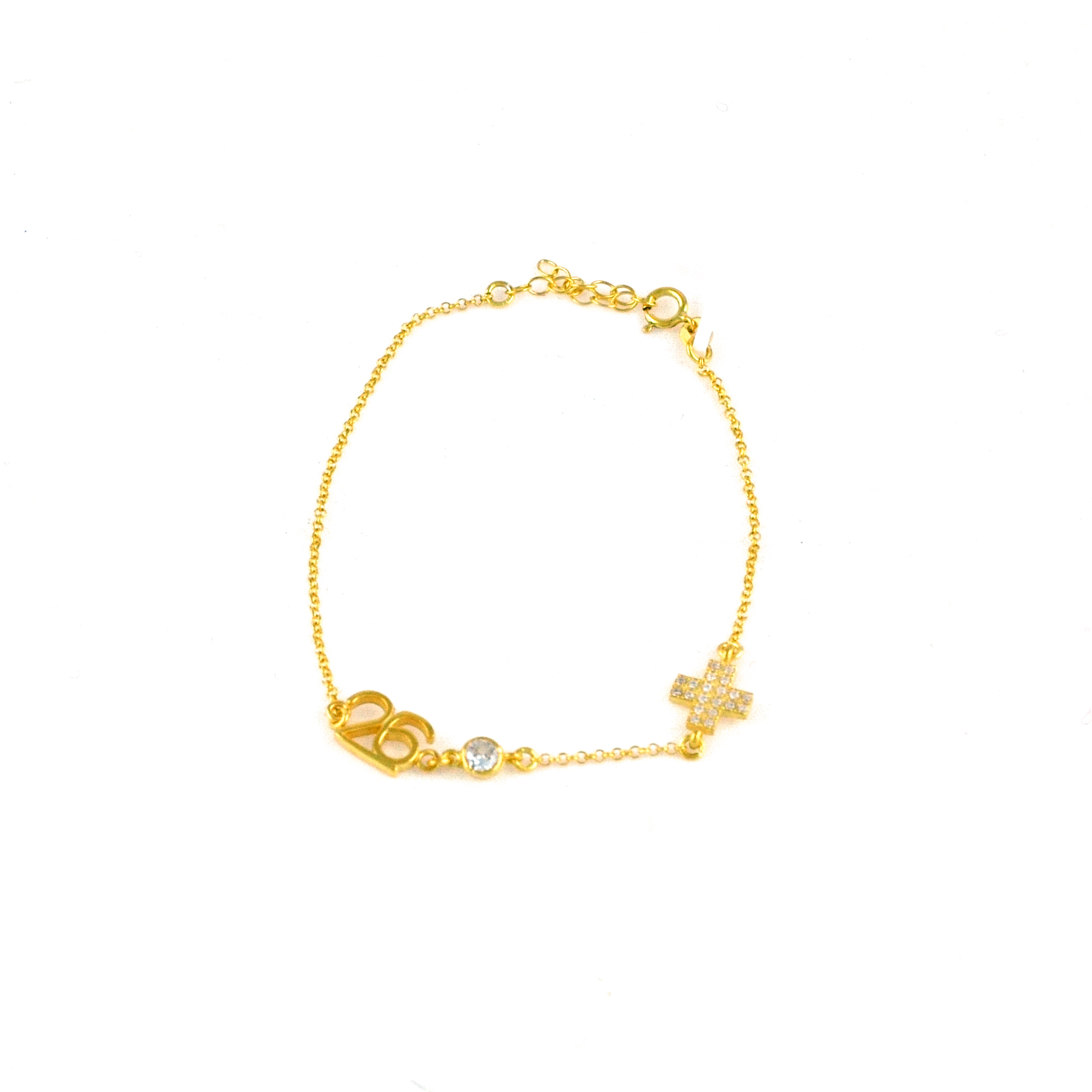 Βραχιόλι ασημένιο επιχρυσωμένο με διακριτικό γούρι από ζιργκόν πέτρες.
