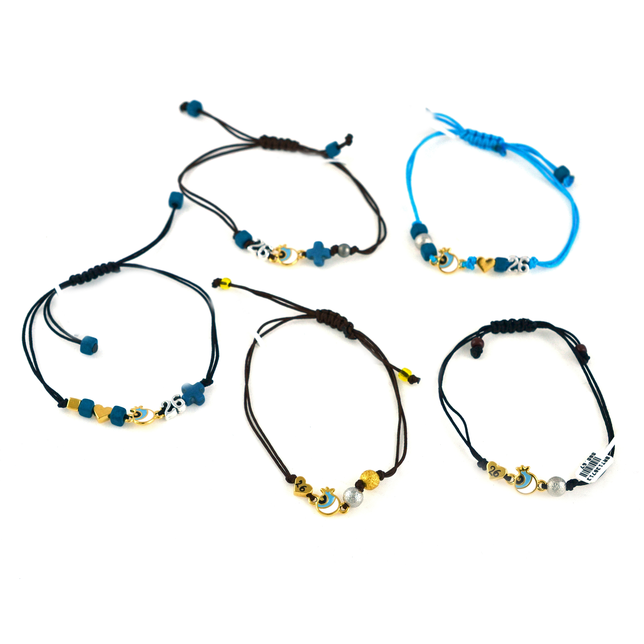 Βραχιόλι δεμένο σε κορδόνι με διακριτικό γούρι από ατσάλι. Πωλείται τεμαχιακά.