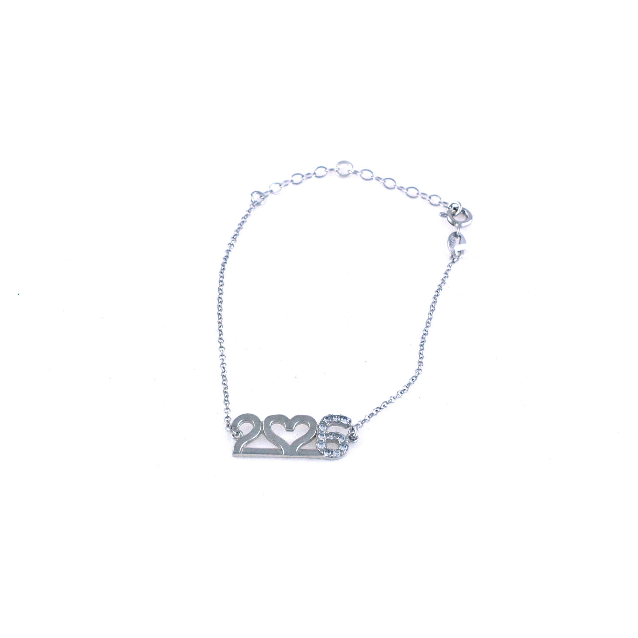 Βραχιόλι ασημένιο με διακριτικό γούρι από ζιργκόν πέτρες.