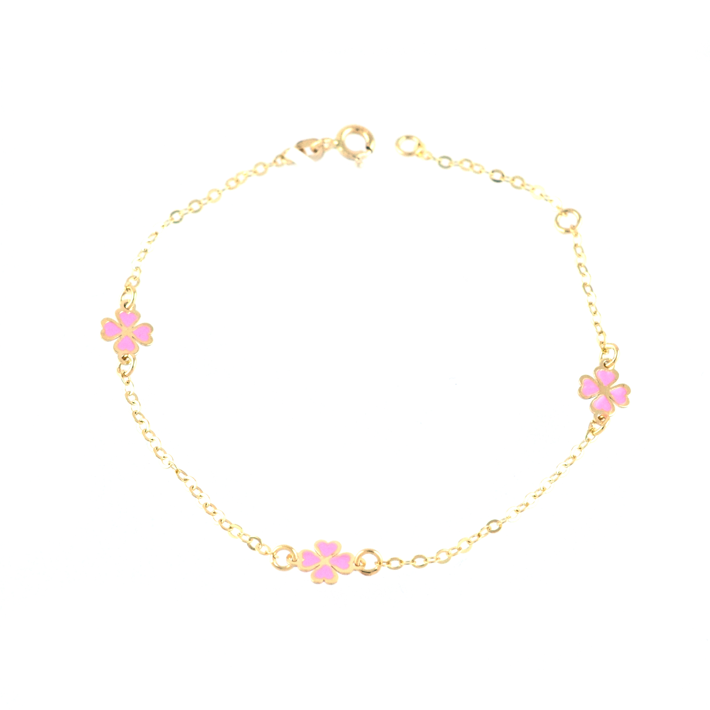 Βραχιόλι χρυσό 09 καρατίων με ανθεκτική αλυσίδα. Βραχιόλι με λουλούδι από σμάλτο.