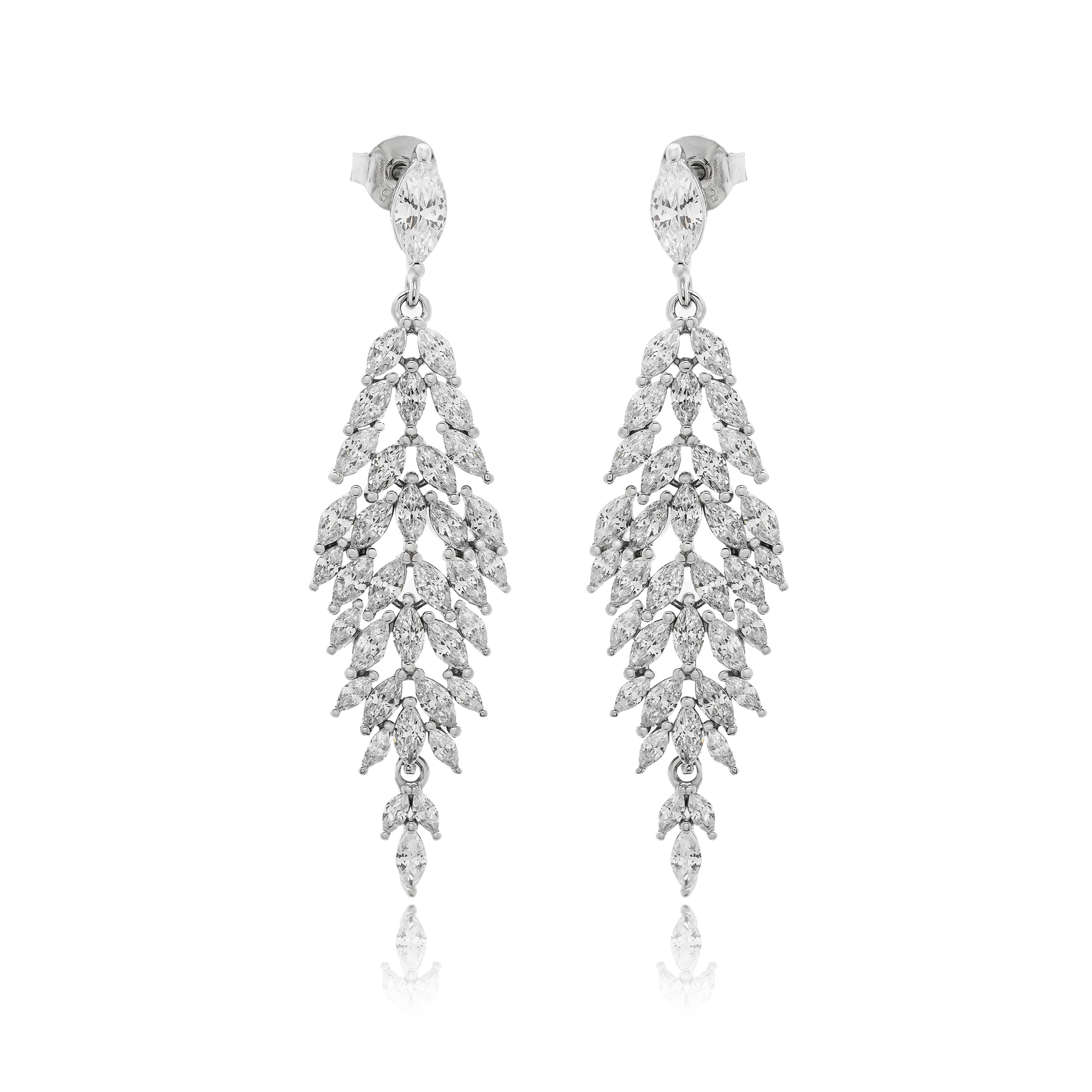 Σκουλαρίκια ασημένια κρεμαστά σε σχέδιο μεσσαίου μεγέθους με ζιργκόν καρφωμένες πέτρες.