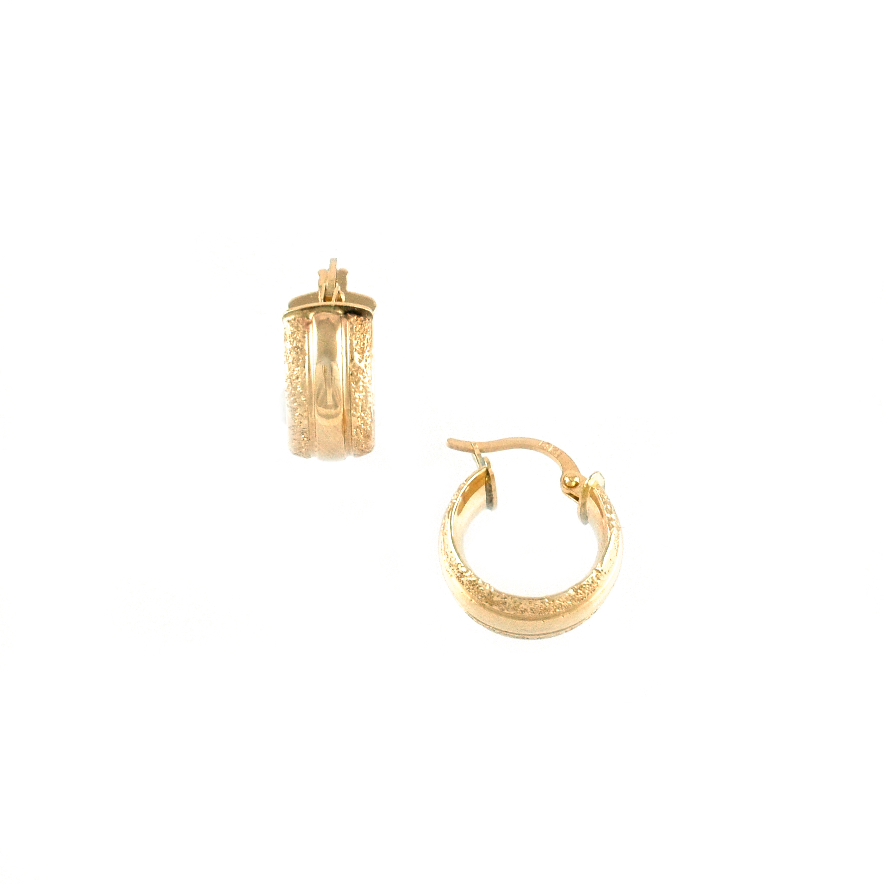 Σκουλαρίκια κρίκοι σε χρυσό 14 καρατίων μεσαίου μεγέθους σε παχύ σχέδιο.