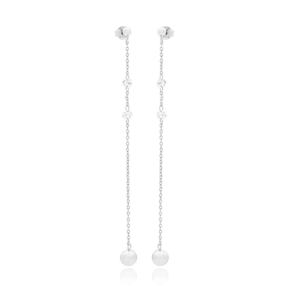 Σκουλαρίκια ασημένια κρεμαστής αλυσίδας με περαστές ζιργκόν πέτρες .