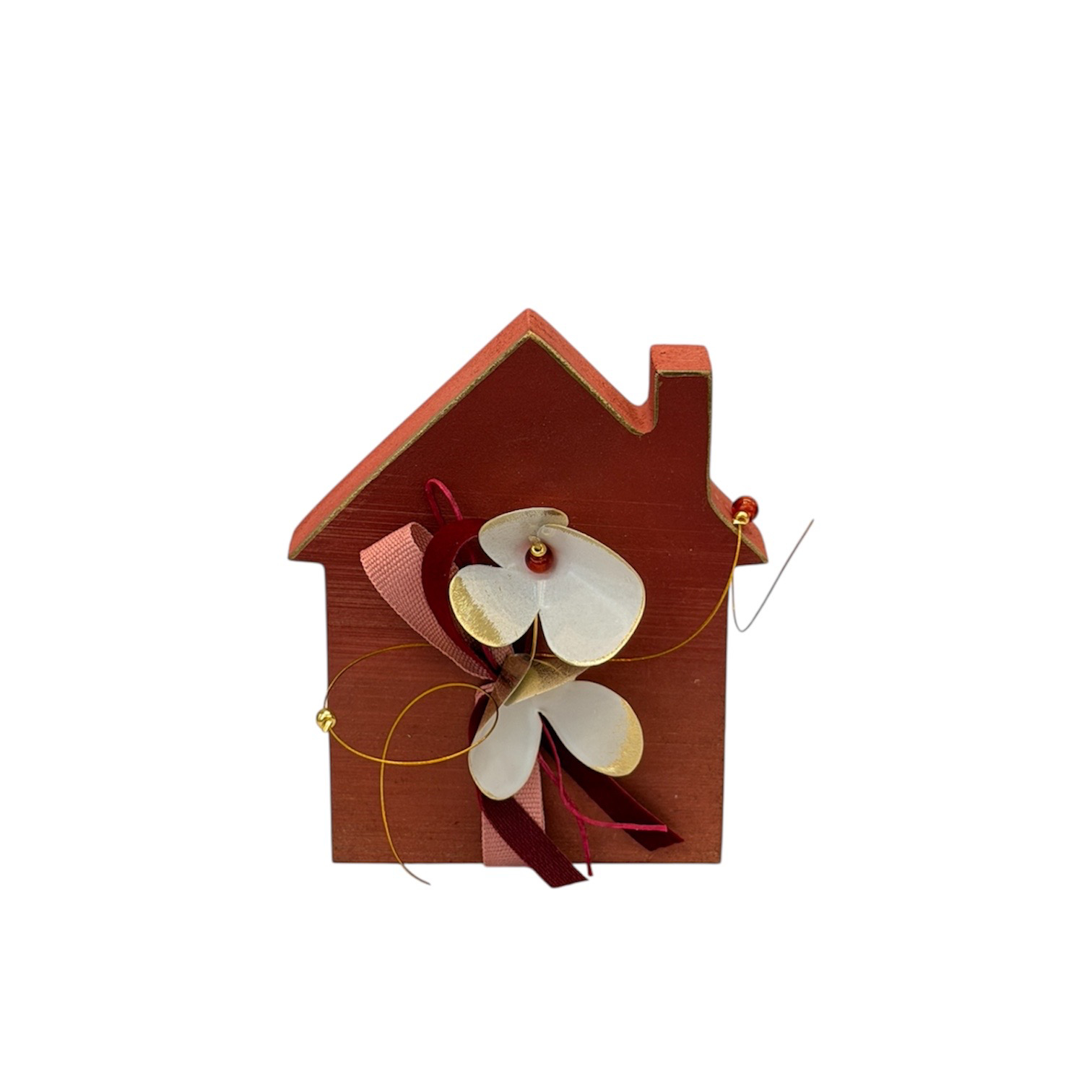 Διακοσμητικό ξύλινο σπίτι με μεταλλικό λουλούδι.