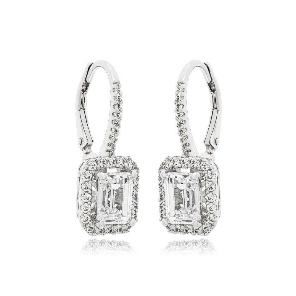 Σκουλαρίκια ασημένια κρεμαστά σε σχέδιο μεσσαίου μεγέθους με ζιργκόν καρφωμένες πέτρες.