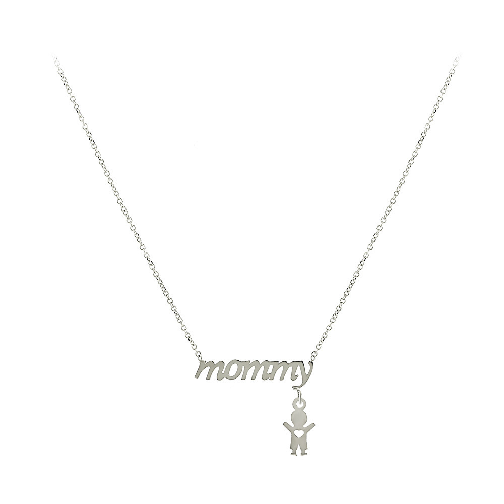 Κολιέ 09 καρατίων σε λευκό χρυσό χρώμα με σχέδιο ΜΑΜΑ και παιδάκι.