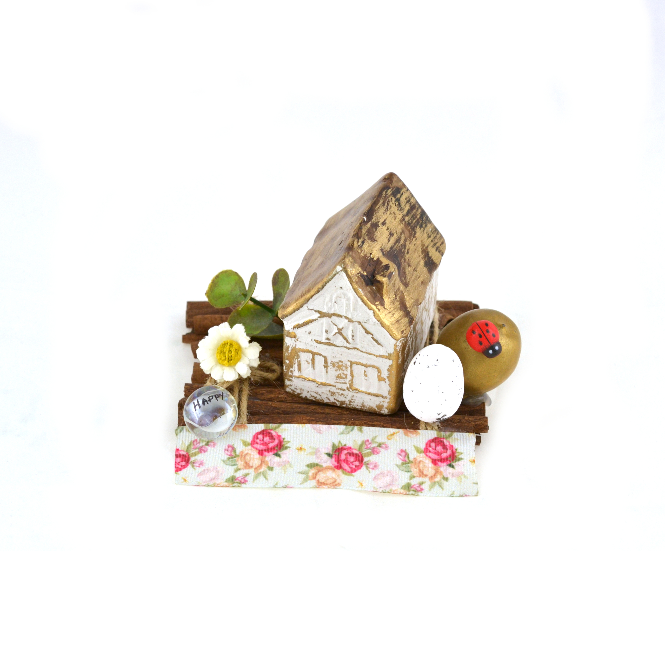 Διακοσμητικό χειροποίητο σπίτι πάνω σε καννέλες για βάση. Πωλείται τεμαχιακά.