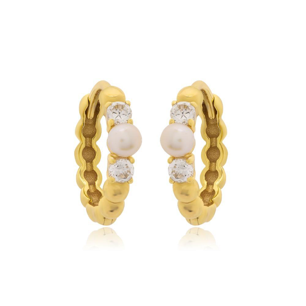 Σκουλαρίκια με σχήμα πολύ μικρού κρίκου με ζιργκόν πέτρες και πέρλα.