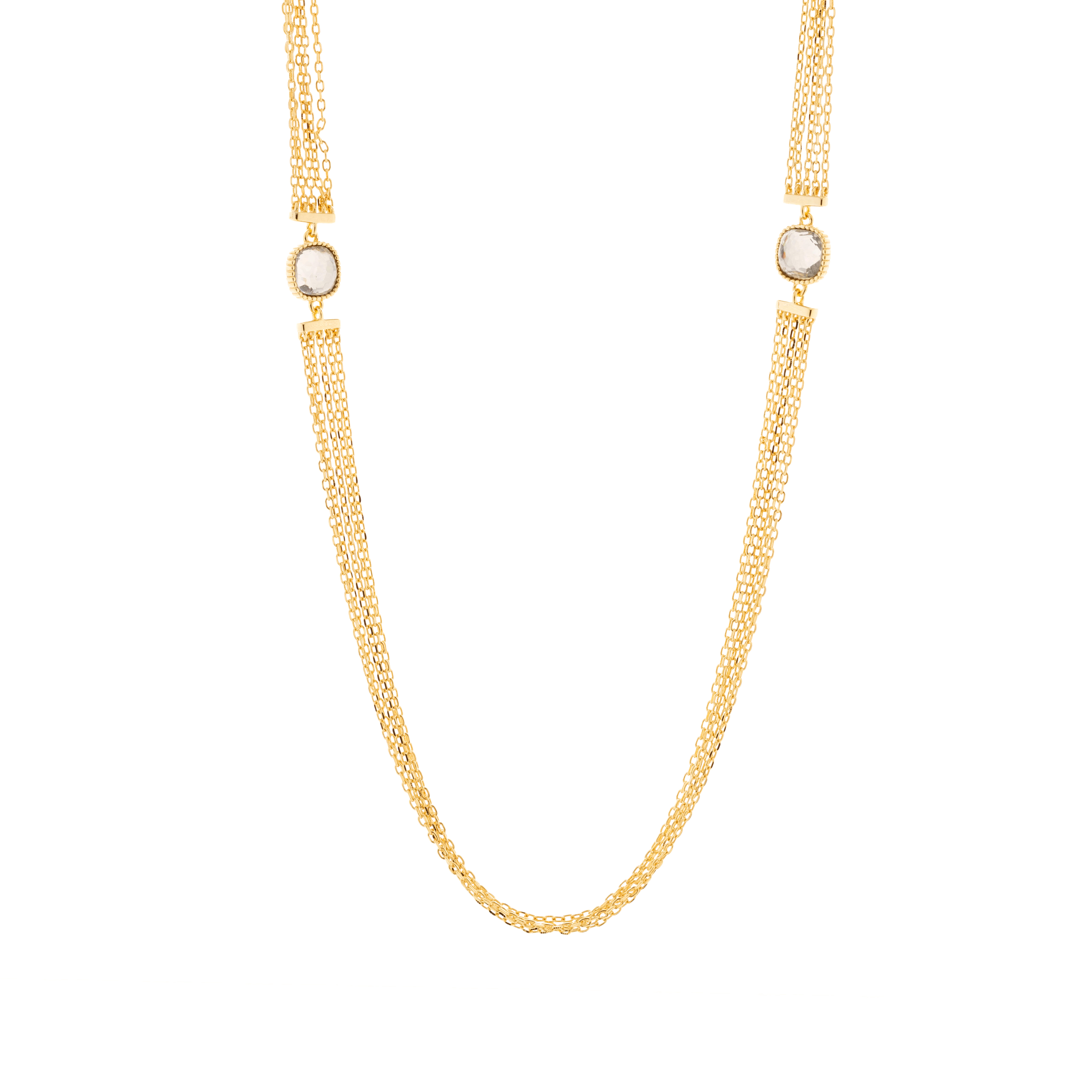 Κολιέ ασημένιο επιχρυσωμένο με πολλαπλέ αλυσίδες και ζιργκόν πέτρες καρφωμένες.