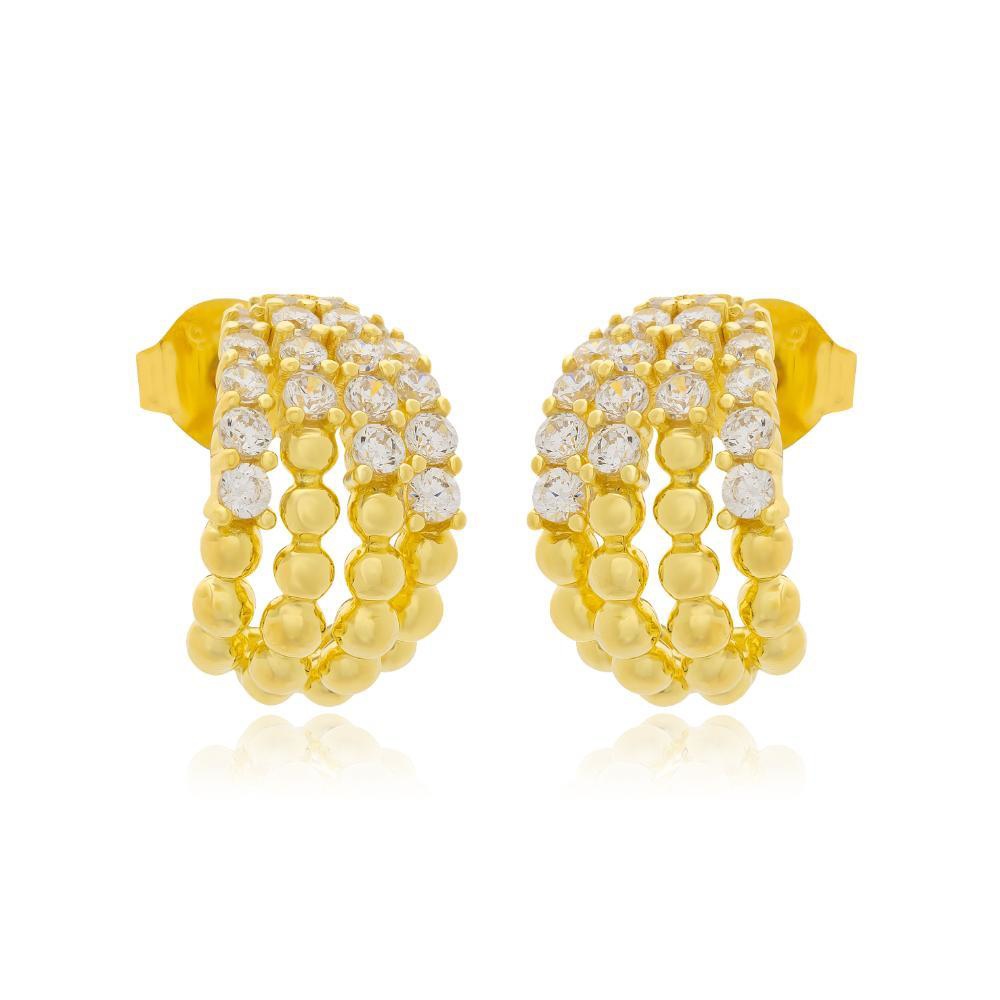 Σκουλαρίκια ασημένια επιχρυσωμένα σε σχέδιο κρίκων μικρού μεγέθους με ζιργκόν πέτρες καρφωμένες.