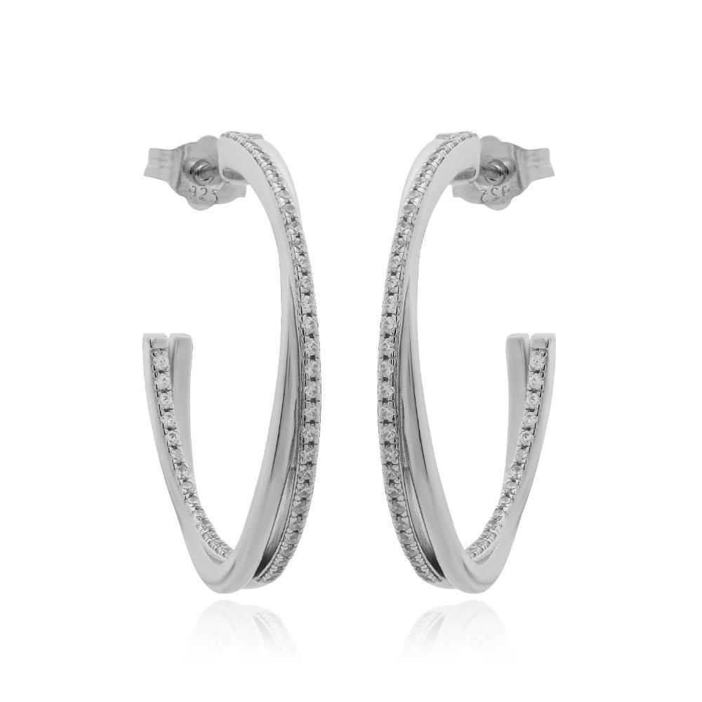 Σκουλαρίκια ασημένια καρφωτά σε σχέδιο μεσσαίου μεγέθους κρίκο με ζιργκόν καρφωμένες πέτρες.