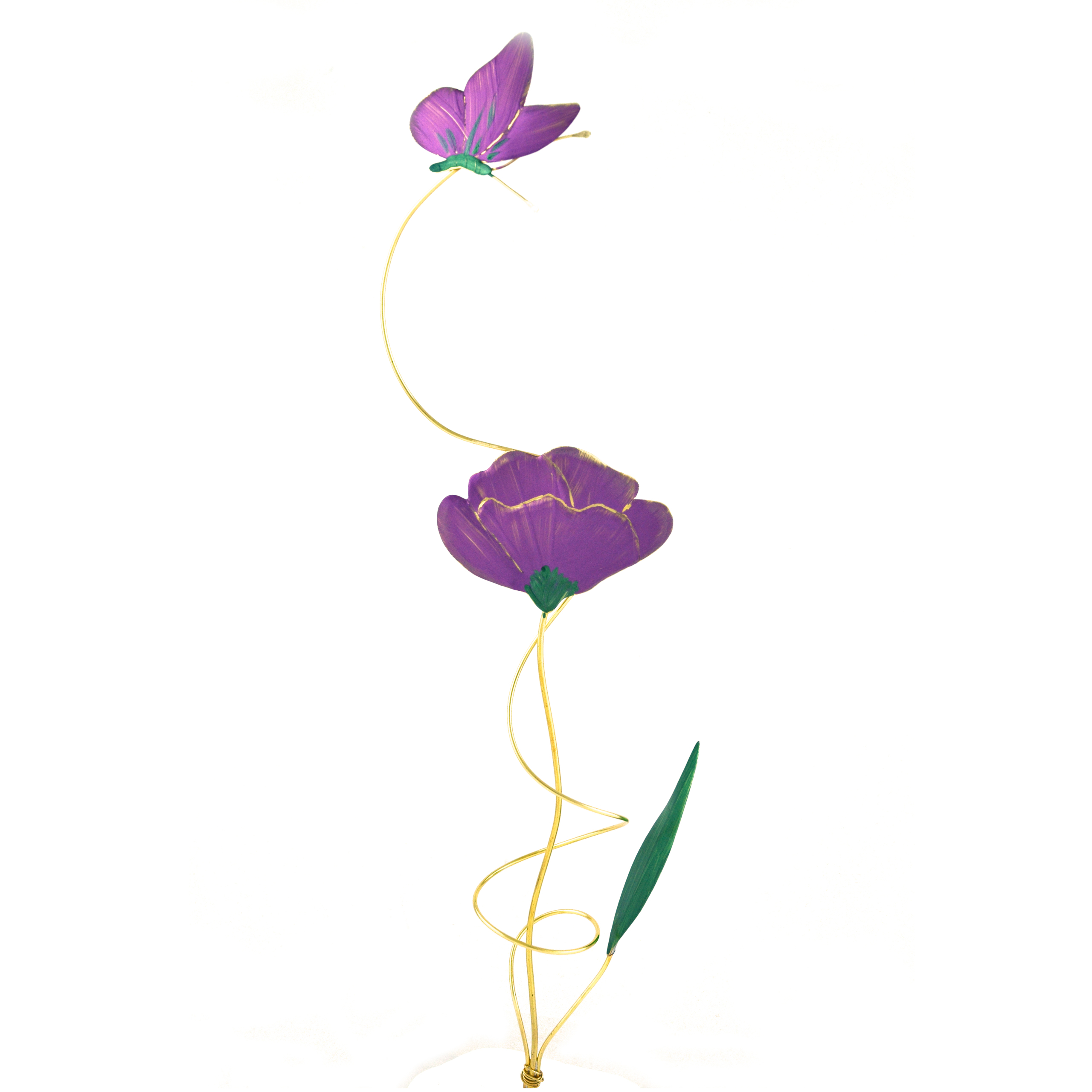 Διακοσμητικό πάνω σε μαρμάρινη βάση με μεταλλικό κλαδί πεταλούδας και λουλουδιού.