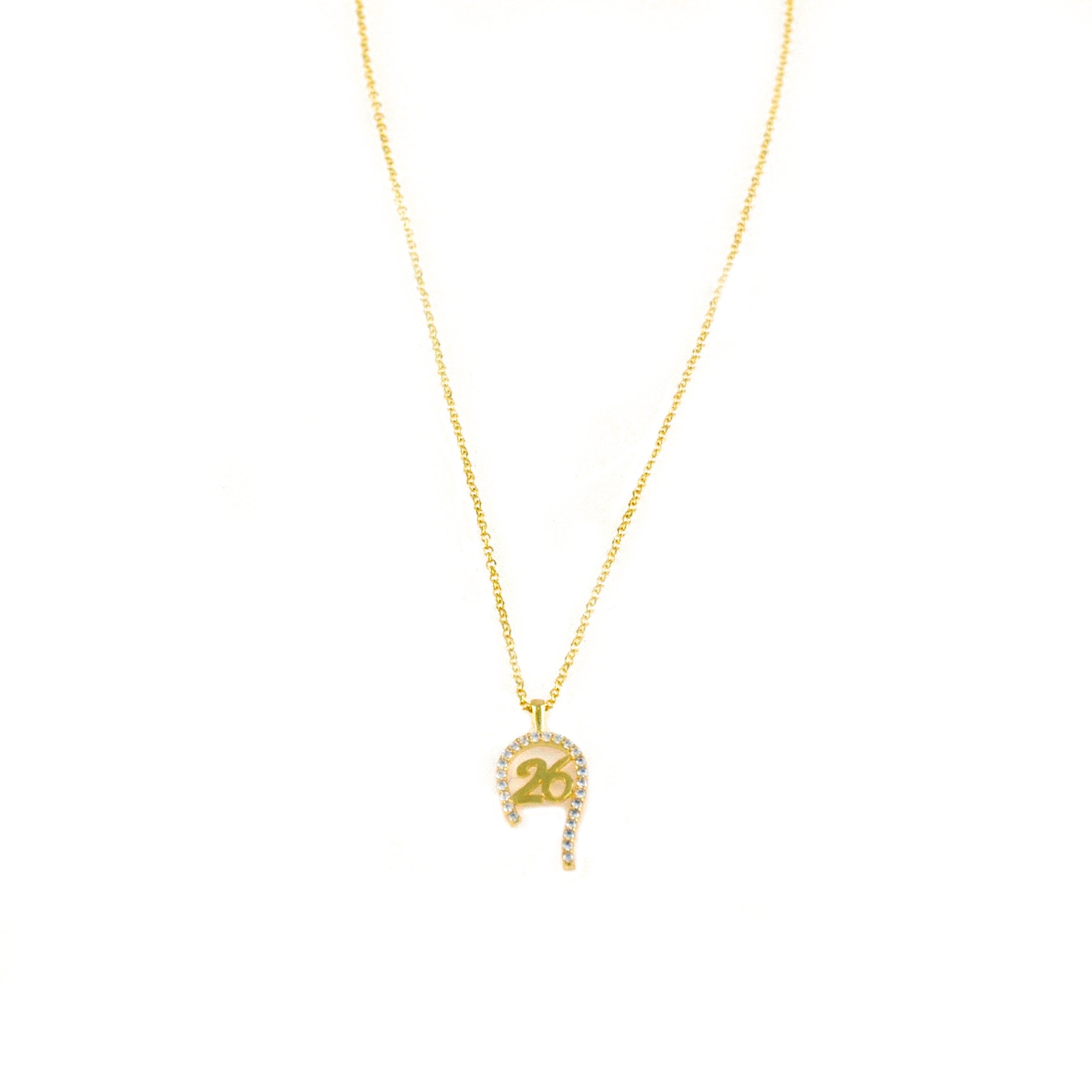 Κολιέ ασημένιο επιχρυσωμένο με διακριτικό μενταγιόν γούρι από ζιργκόν πέτρες.