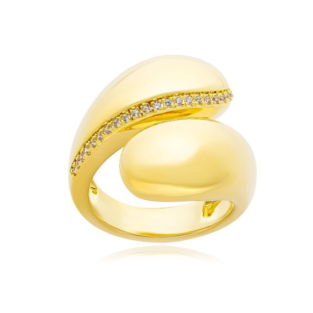 Δαχτυλίδι ασημένιο με επιχρυσωμένη επιφάνεια φαρδύ από ζιργκόν πέτρες.