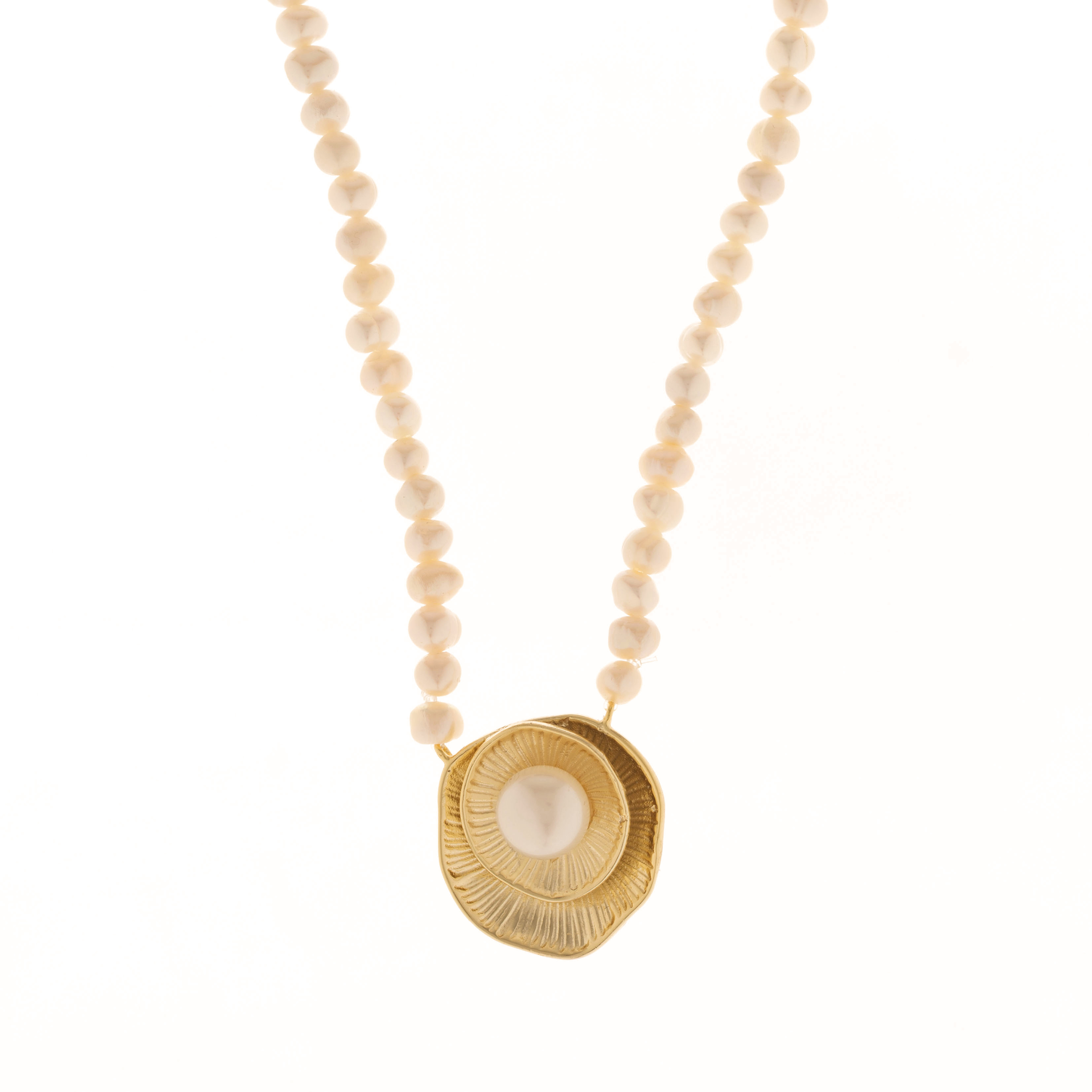 Κολιέ ασημένιο επιχρυσωμένο σε σχέδιο περιδέραιο με πέρλες.