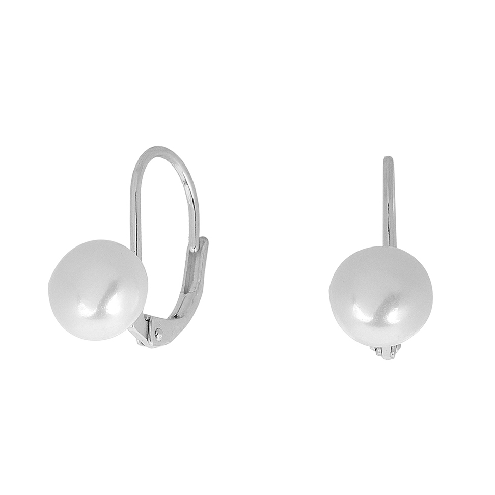 Ασημένια σκουλαρίκια γάτζοι με πέρλα μεσσαίου μεγέθους.