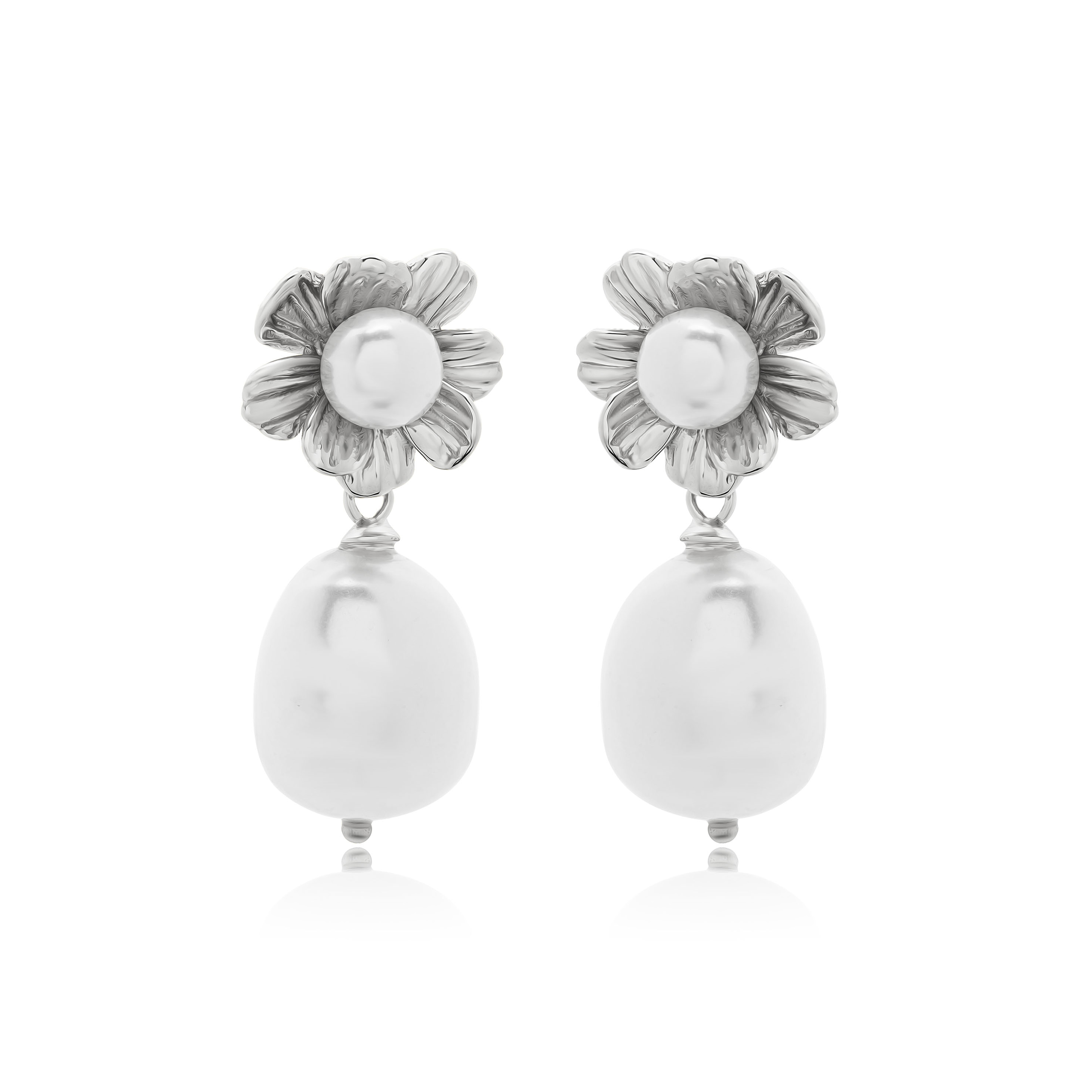 Σκουλαρίκια ασημένια σε σχέδιο καρφωτό κρεμαστό με μαργαριτάρι.