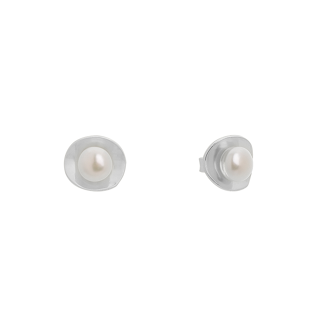 Ασημένια σκουλαρίκια καρφωτά σε σχέδιο πέρλας.