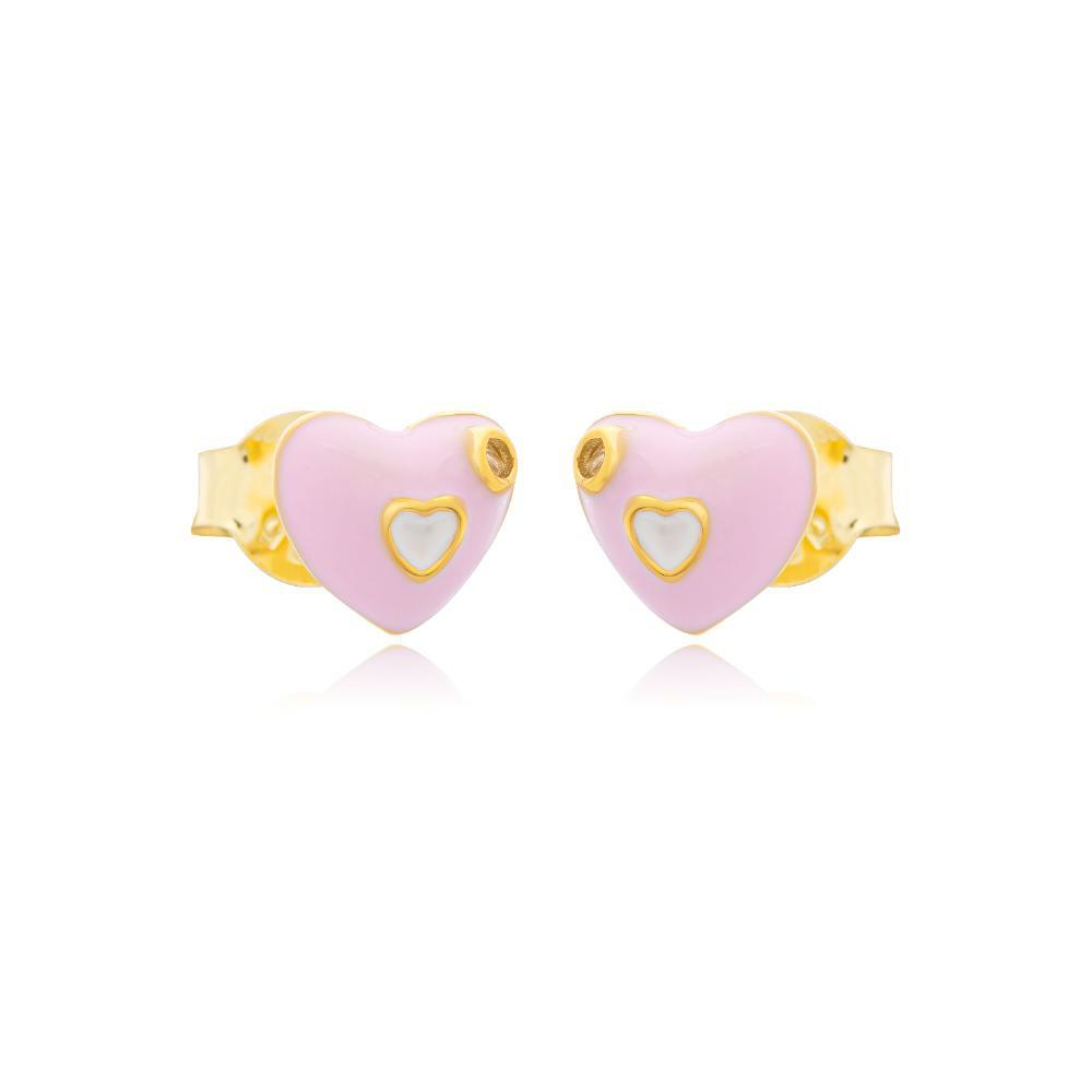 Σκουλαρίκια ασημένια επιχρυσωμένα σε σχέδιο καρδιάς από σμάλτο.