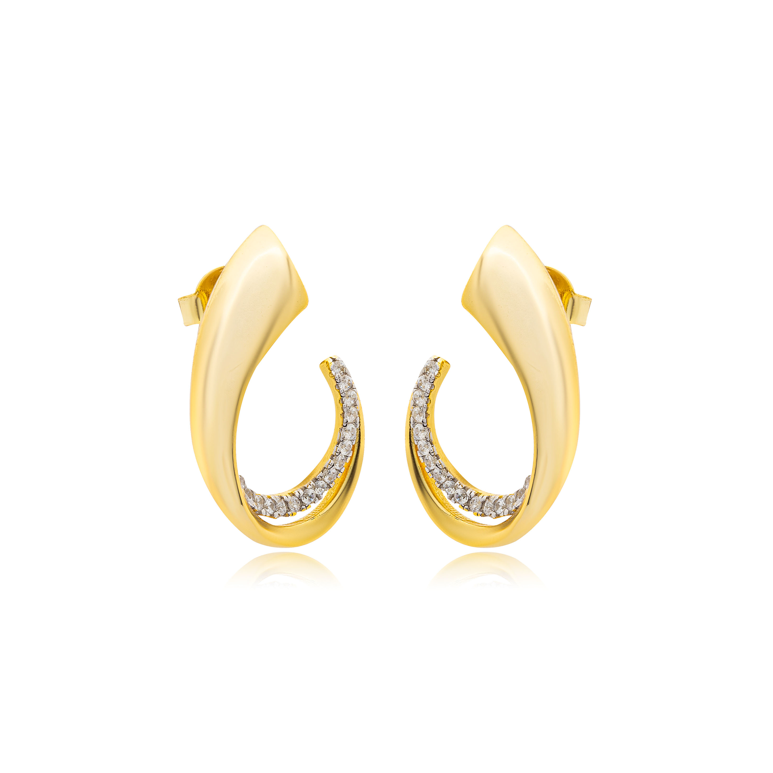 Σκουλαρίκια ασημένια επιχρυσωμένα, σε σχέδιο κρεμαστού σκουλαρικιού μεσσαίου μεγέθους με ζιργκόν πέτρες.