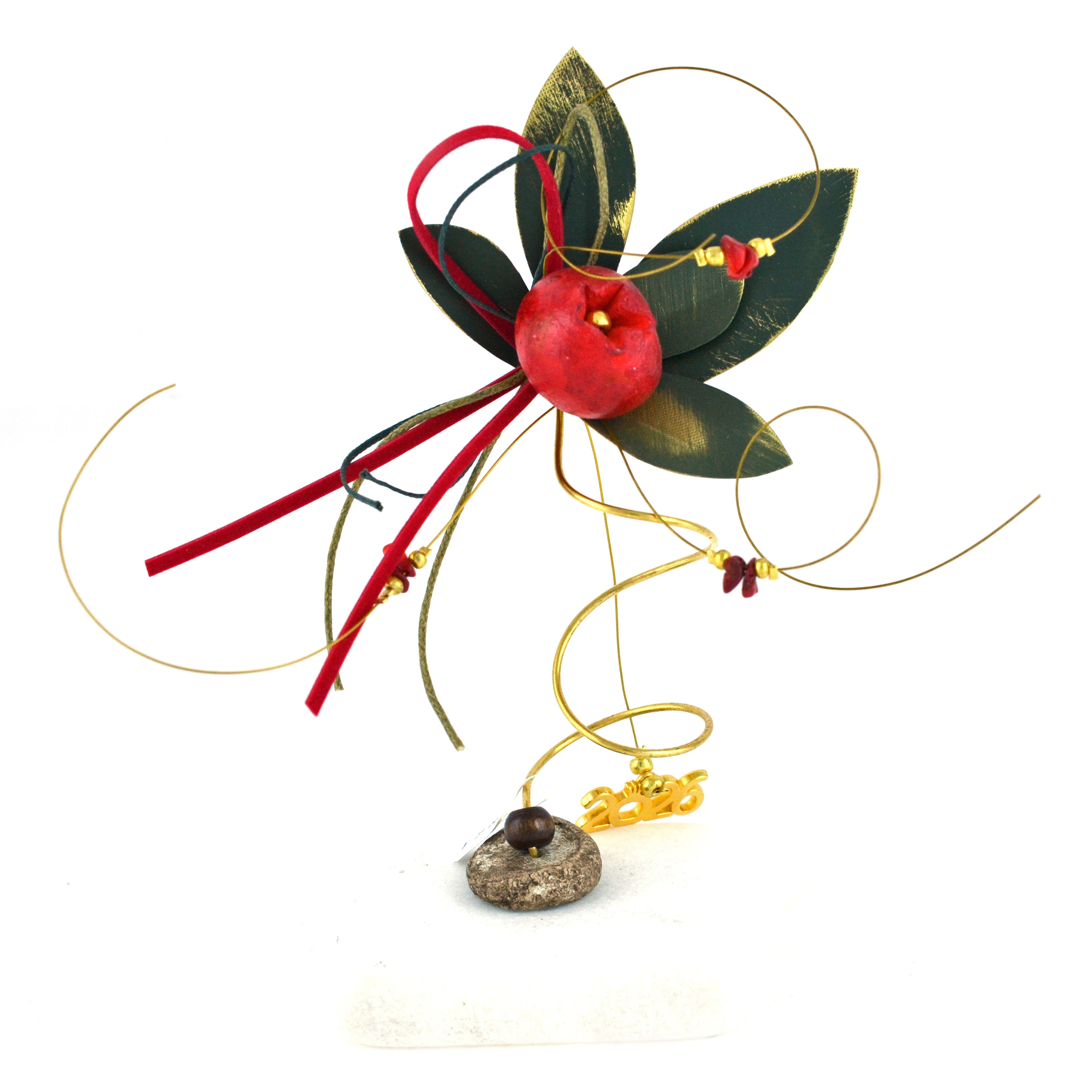 Διακοσμητικό χειροποίητο ρόδι πήλινo πάνω σε μαρμάρινη βάση.