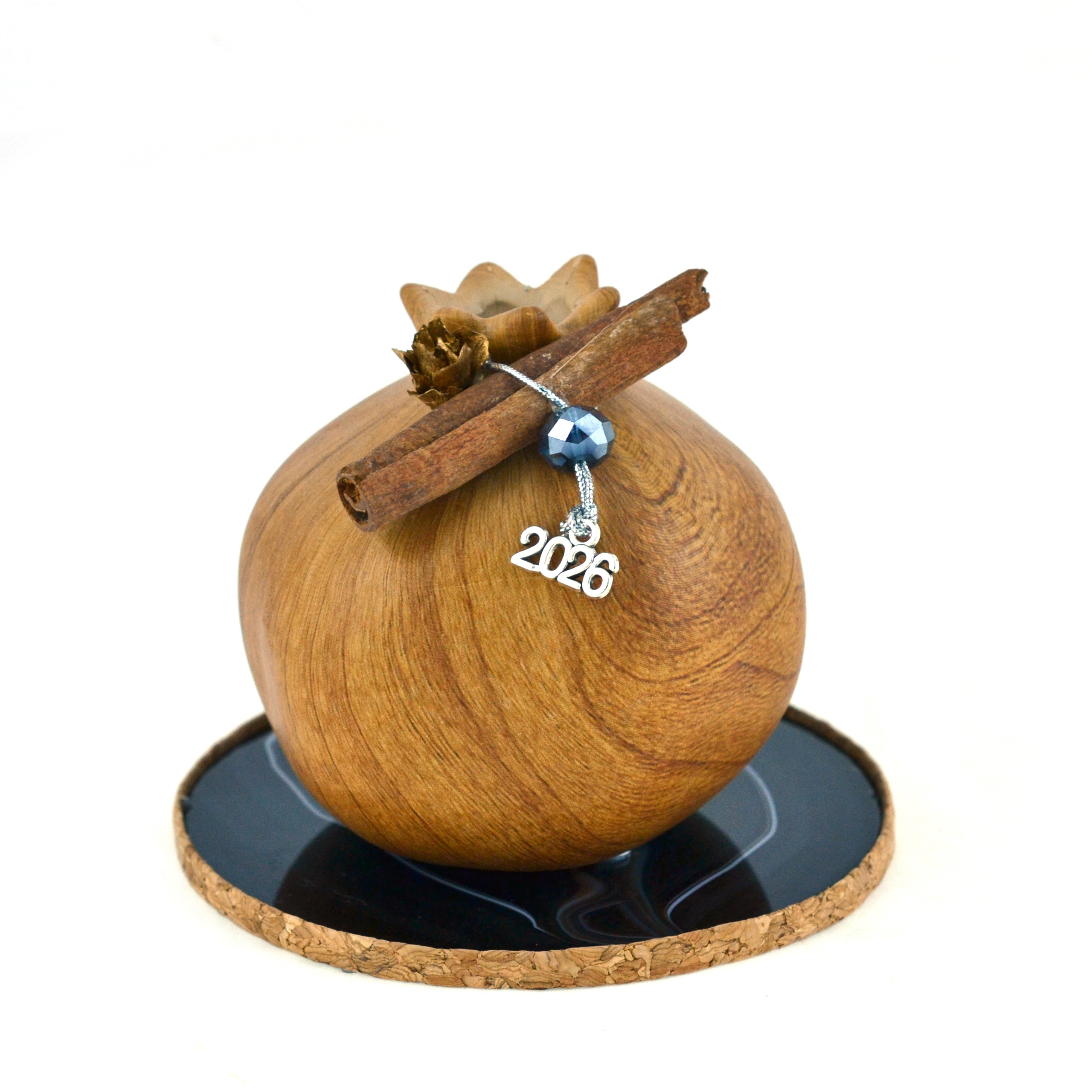Χειροποίητο διακοσμητικό επιτραπέζιο με ξύλινο ρόδι σε βάση από πέτρα όνυχα.