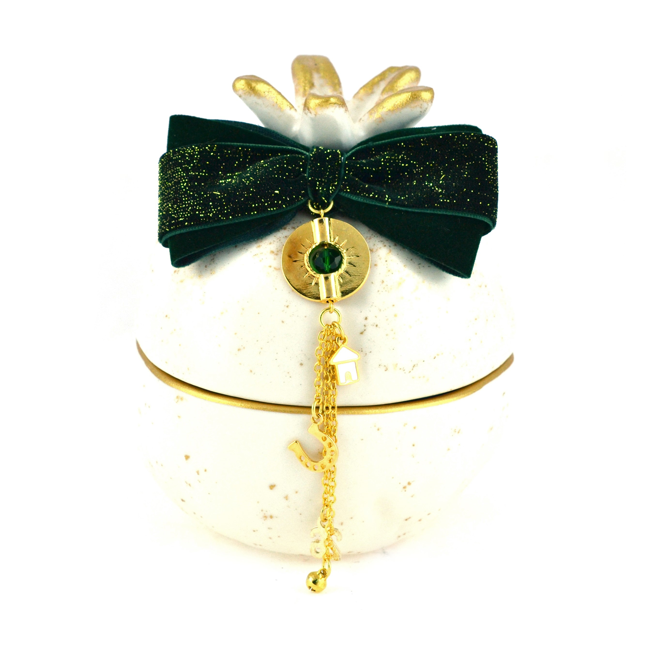 Χειροποίητο γούρι ρόδι μεσσαίου μεγέθους, κεραμικό σε άσπρο χρώμα στολισμένο με κόκκινα μικρότερα ρόδια.