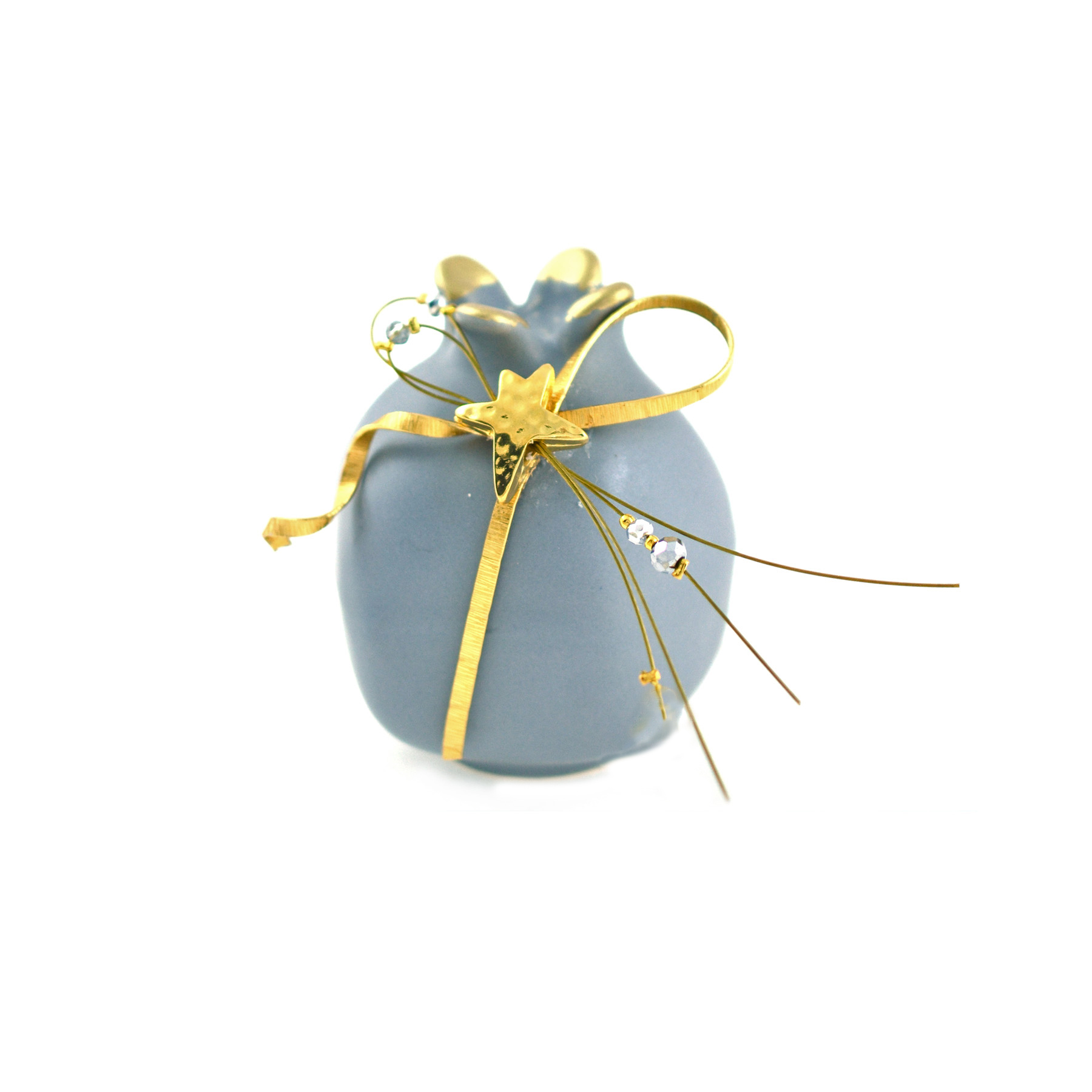 Χειροποίητο γούρι ρόδι μεσσαίου μεγέθους, κεραμικό σε άσπρο χρώμα στολισμένο με κόκκινα μικρότερα ρόδια.