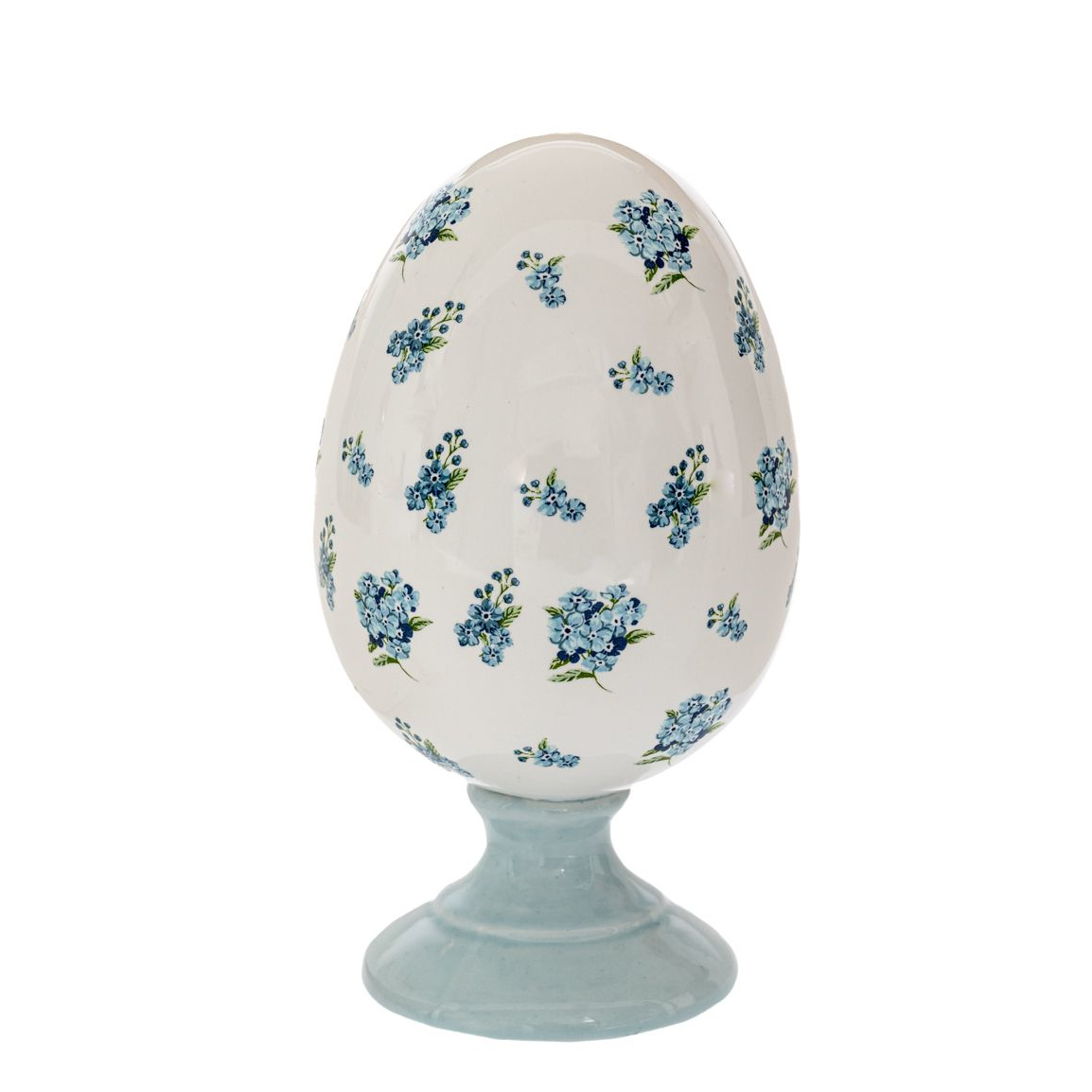Διακοσμητικό αυγό μεσσαίου μεγέθους σε βάση με λουλούδια σε όλη την επιφάνεια.