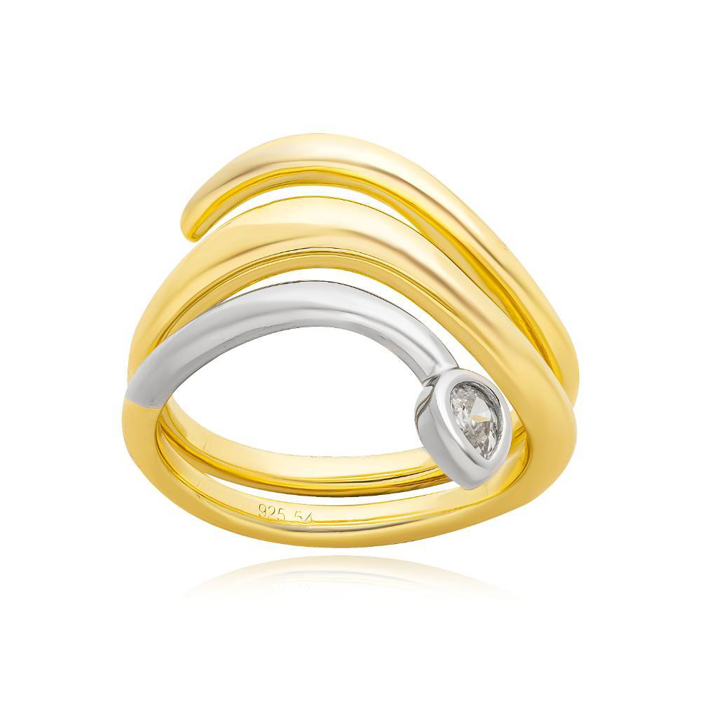 Δαχτυλίδι ασημένιο με επιχρυσωμένη επιφάνεια σε μοντέρνο σχέδιο με ζιργκόν πετρα.