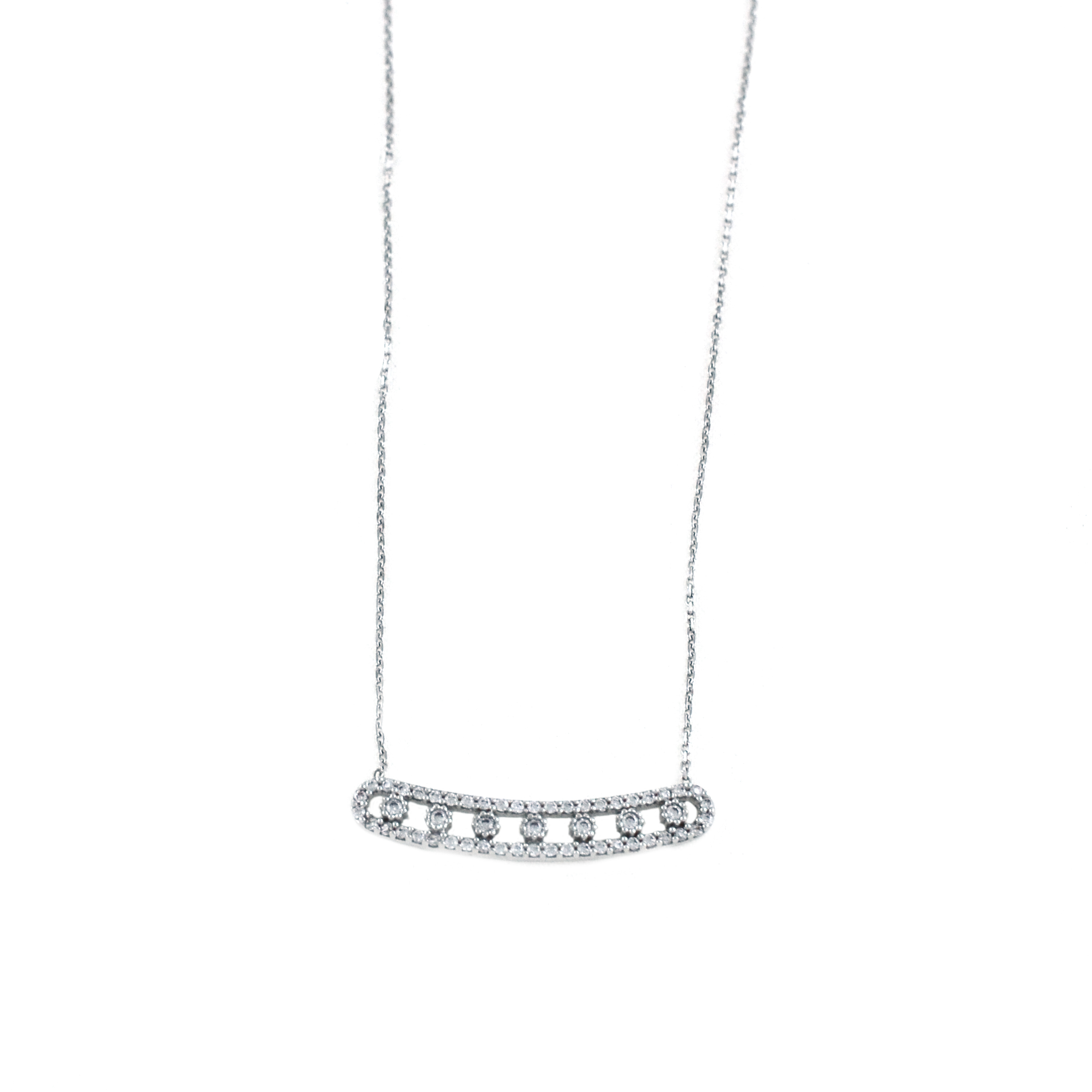 Κολιέ με μπάρα σε λευκό χρυσό 14 καρατίων με ζιργκόν πέτρες.