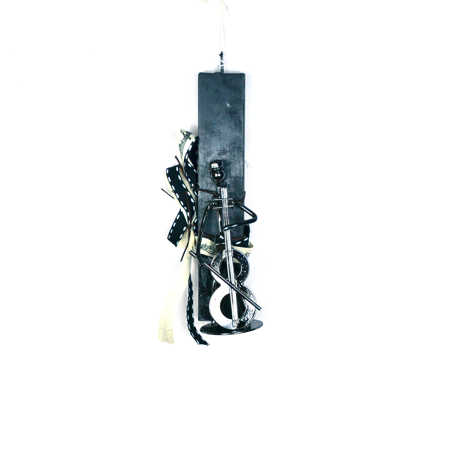 Λαμπάδα χειροποίητη με τετραγωνισμένο με διακοσμητικό μεταλλικό μουσικό.