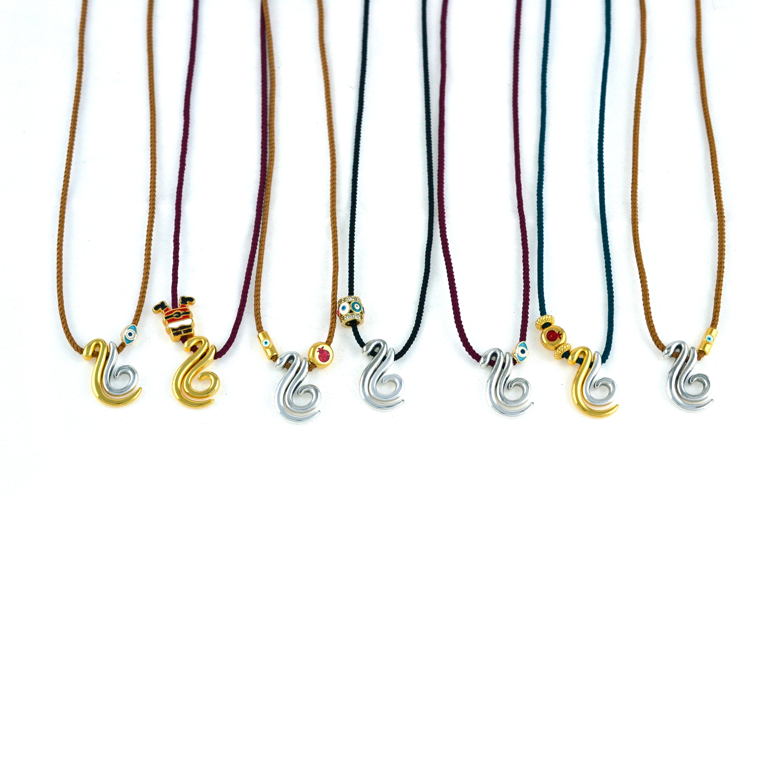 Κολιέ μακρύ σε κορδόνι, με μενταγιόν γούρι 26 από διάφορα διακοσμητικά στοιχεία. Πωλείται τεμαχιακά.