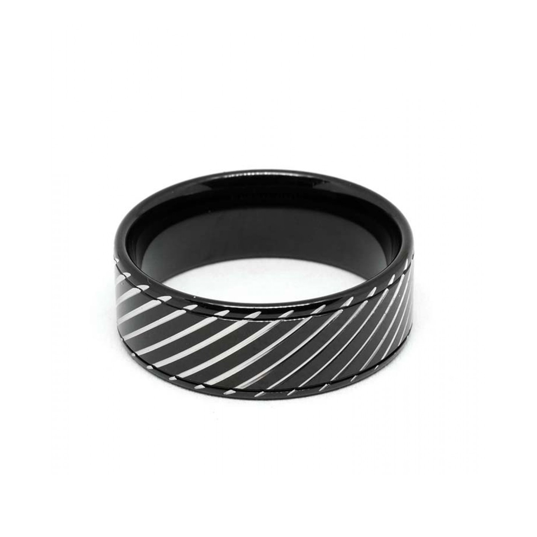 Δαχτυλίδι από ατσάλι σε ασημί και μαύρο χρώμα.