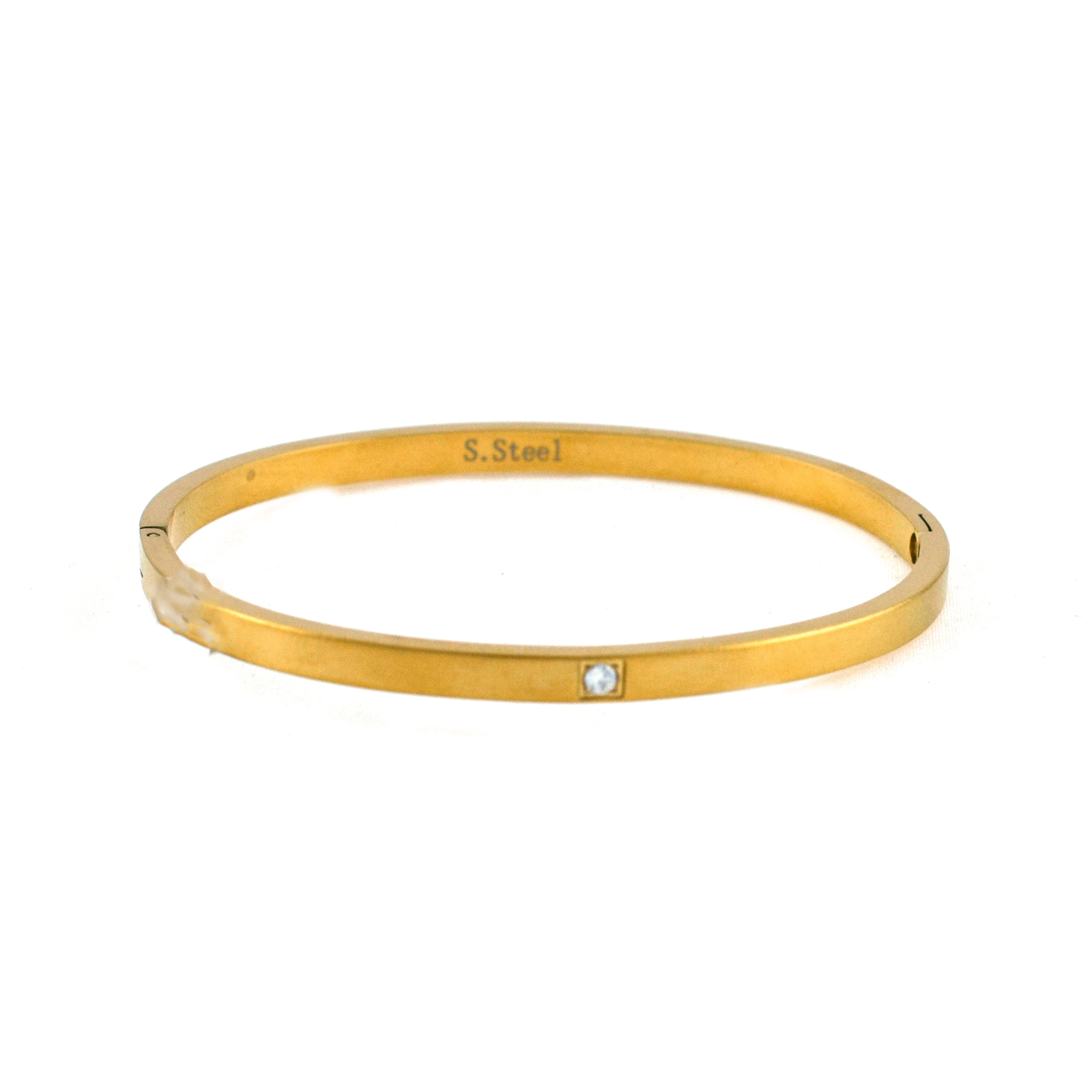 Βραχιόλι ατσάλινο με κίτρινο χρυσό χρώμα και μια κεντρική πέτρα.